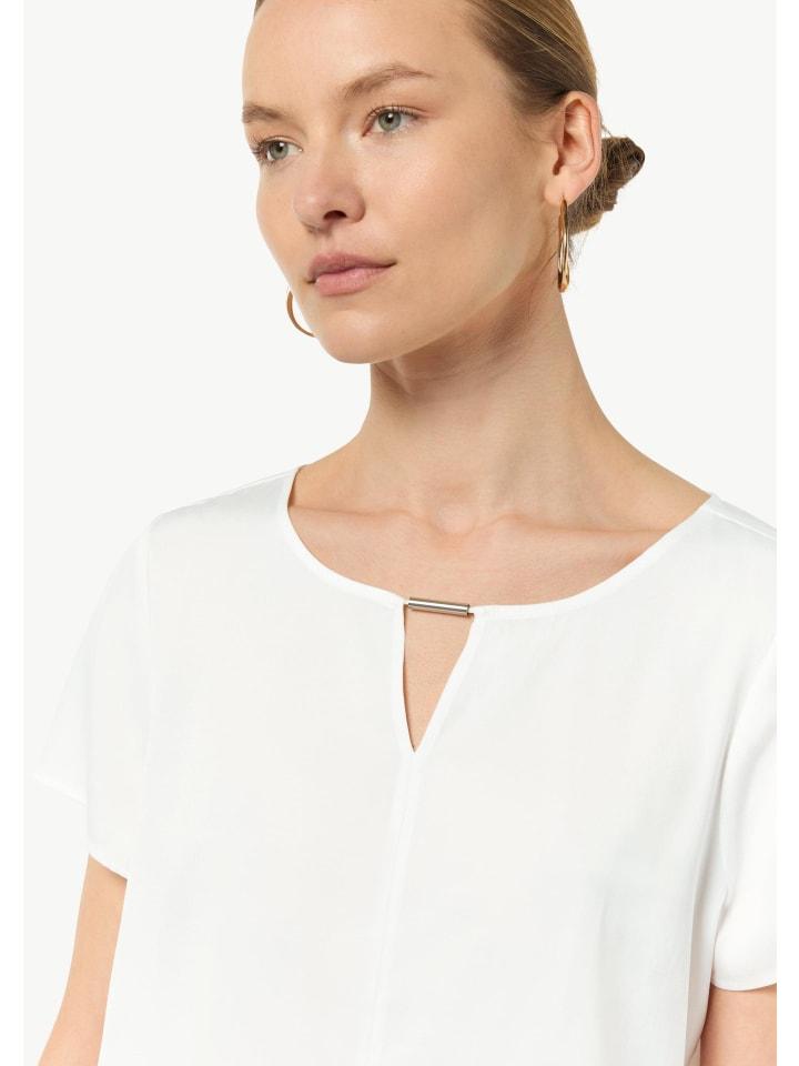 Ощутите вневременную элегантность этой атласной блузки. Классический туникообразный вырез и короткие рукава придадут вам изысканный, женственный деловой образ. Гладкая ткань и классический крой создают изящный силуэт. В офисе или на встрече - эта блузка выделит вас среди других.
