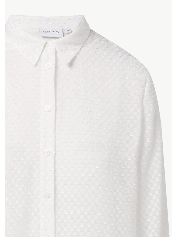 Полупрозрачная жаккардовая блузка-рубашка: изысканный штрих для вашего гардероба. Эта блузка с длинными рукавами имеет классический рубашечный воротник и сдержанную планку на пуговицах. Эластичные манжеты обеспечивают идеальную посадку, а закругленный подол добавляет женственности. Слегка прозрачная жаккардовая ткань придает изделию элегантный вид. Создавайте элегантный деловой образ или сочетайте с джинсами.