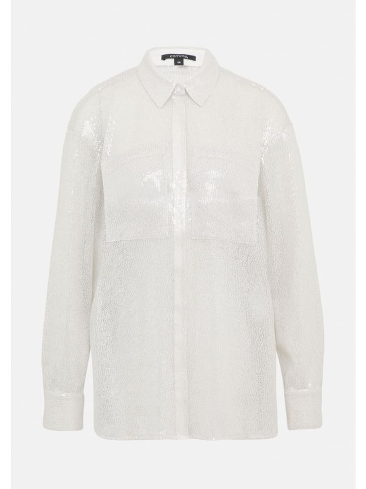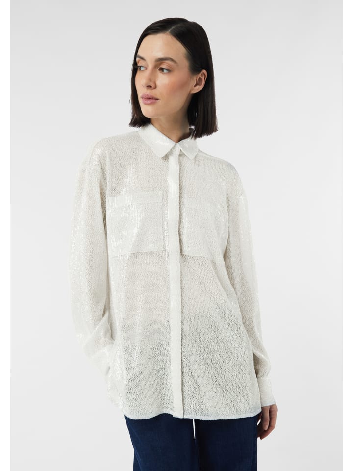 Праздничная блузка-рубашка свободного кроя с пайетками: изюминка вашего гардероба! Эта блузка идеально сочетает в себе гламур и комфорт. Свободный крой создает непринужденный силуэт, а пайетки добавляют праздничного блеска. Идеально подходит для вечеринок или элегантных праздничных вечеров. Практичная планка на пуговицах позволяет создавать разнообразные образы. Сочетайте с узкими брюками для создания гармоничного образа.