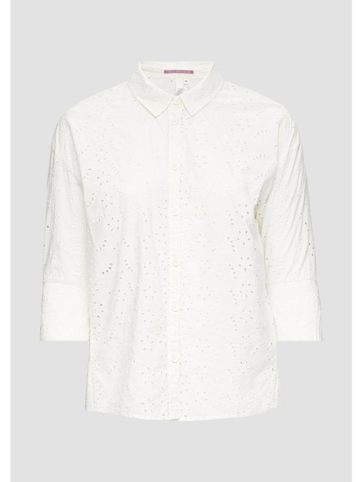 Свободная блузка-рубашка свободного кроя с круглым вырезом и планкой на пуговицах. Легкая ткань с вышивкой ажурным узором делает ее идеальным компаньоном для повседневных дней. Ваш новый фаворит для стильного образа как в повседневной жизни, так и на мероприятиях.