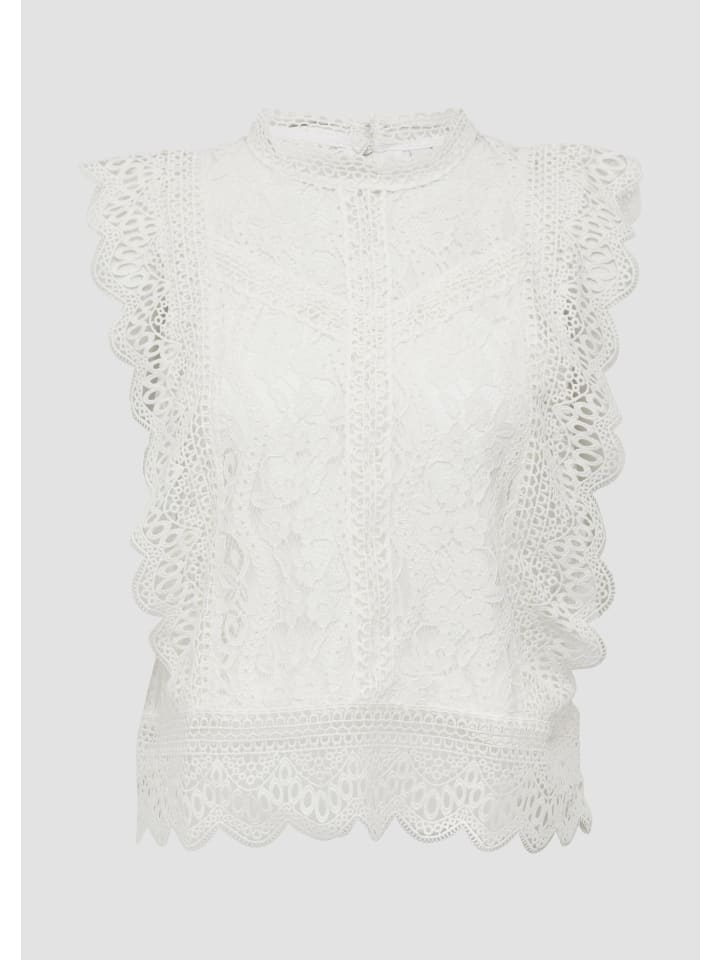 Стильная блузка для прохладных летних дней! Кружевная ткань и женственный классический крой делают ее идеальным дополнением к вашим повседневным образам. Легкая и без рукавов - идеально подходит для жарких дней и теплых ночей.