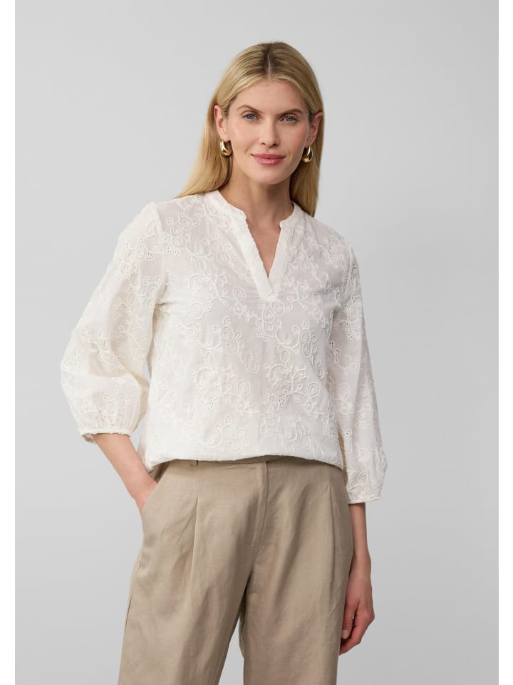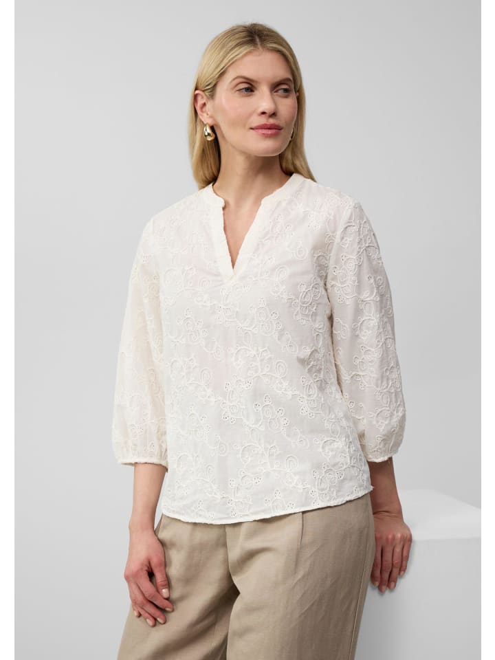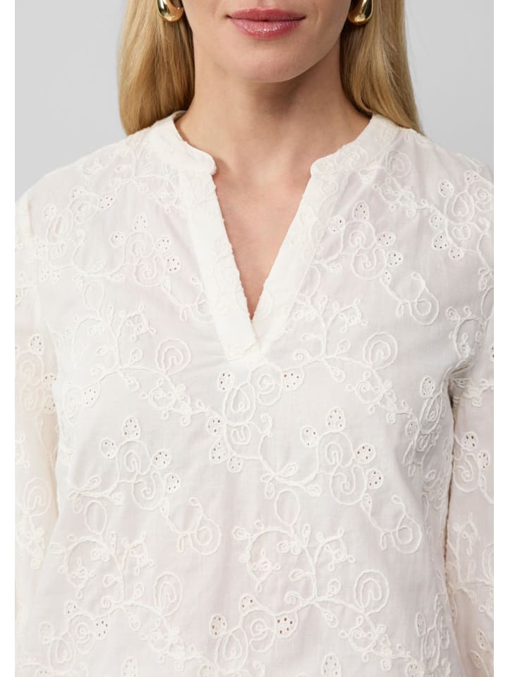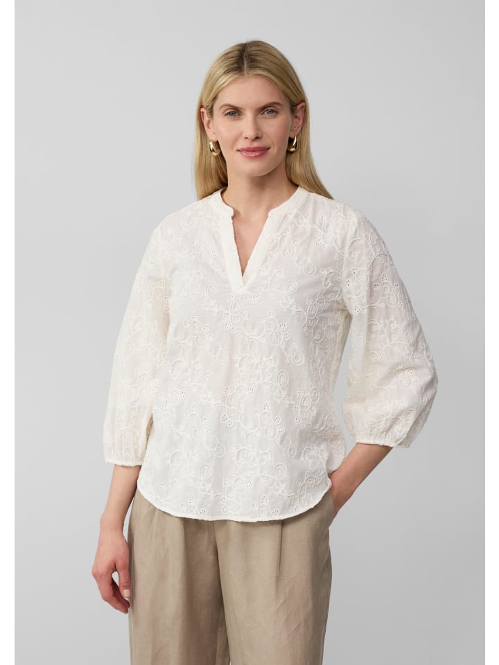 Элегантная универсальность и комфорт: эта хлопковая блузка с изысканной вышивкой и рукавами 3/4 станет вашим идеальным спутником на любой случай. Туникообразный вырез и классический крой подчеркнут вашу фигуру. Будь то повседневный, деловой или праздничный образ - вы будете излучать уверенность и стиль.
