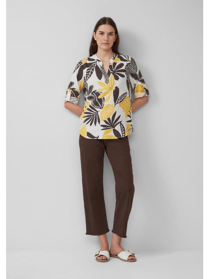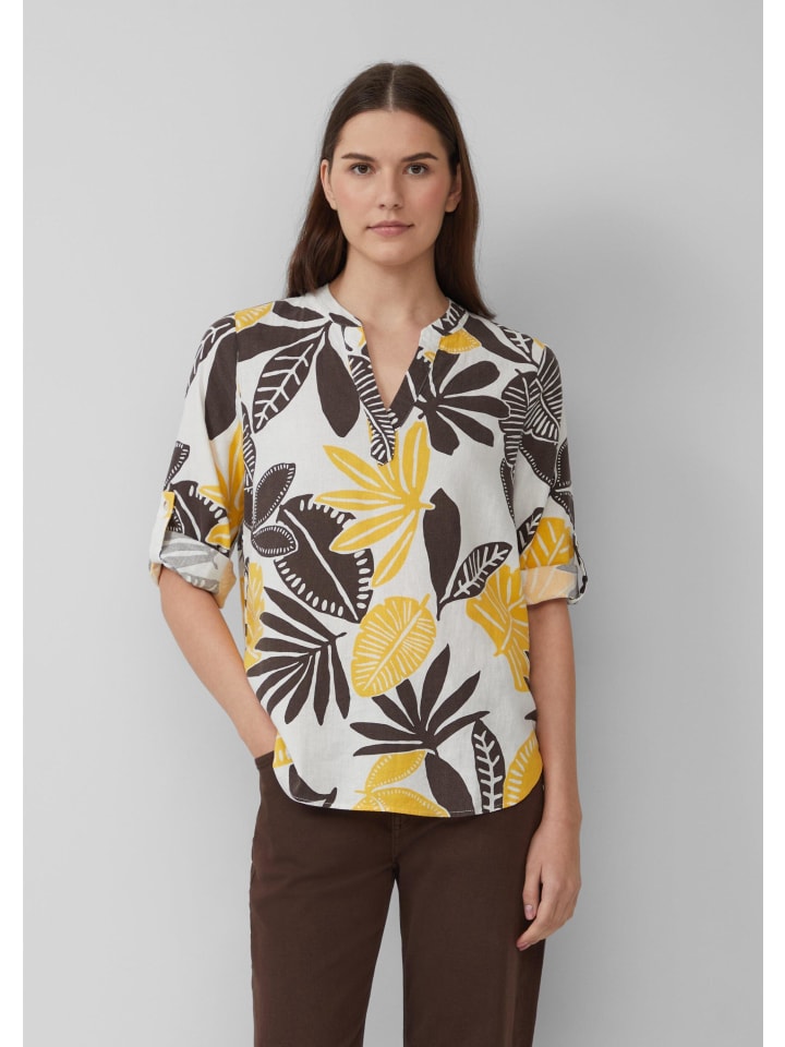 Воздушная и легкая блузка-туника из высококачественной льняной ткани идеально подходит для расслабленных летних дней. Женственный V-образный вырез, практичные рукава три четверти с хлястиками и свободный классический крой создают вневременное непринужденное очарование.