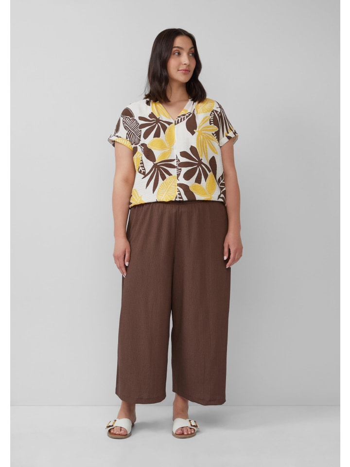 Эта воздушная блузка свободного кроя очаровывает стильным принтом по всей поверхности. Изысканные детали круглого выреза и спущенные плечи придают повседневному образу особую женственность. Идеально подходит для расслабленных летних дней.