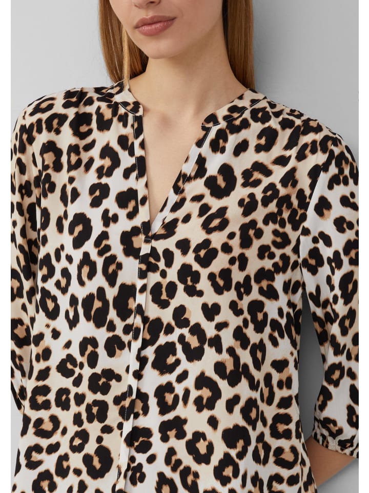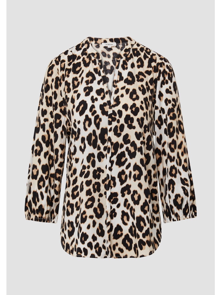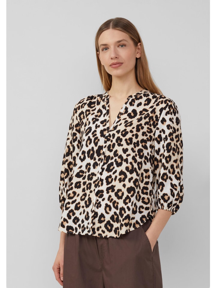 Эта воздушная и легкая вискозная блузка прямого кроя очаровывает своим эффектным леопардовым принтом. Средняя длина делает ее универсальным дополнением как для повседневных, так и для деловых образов.