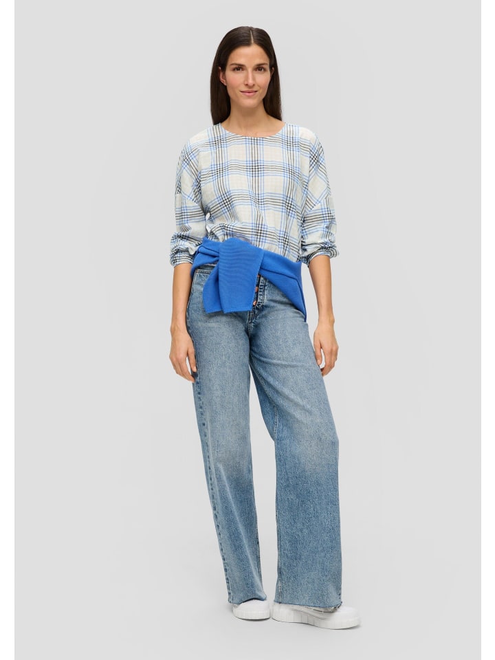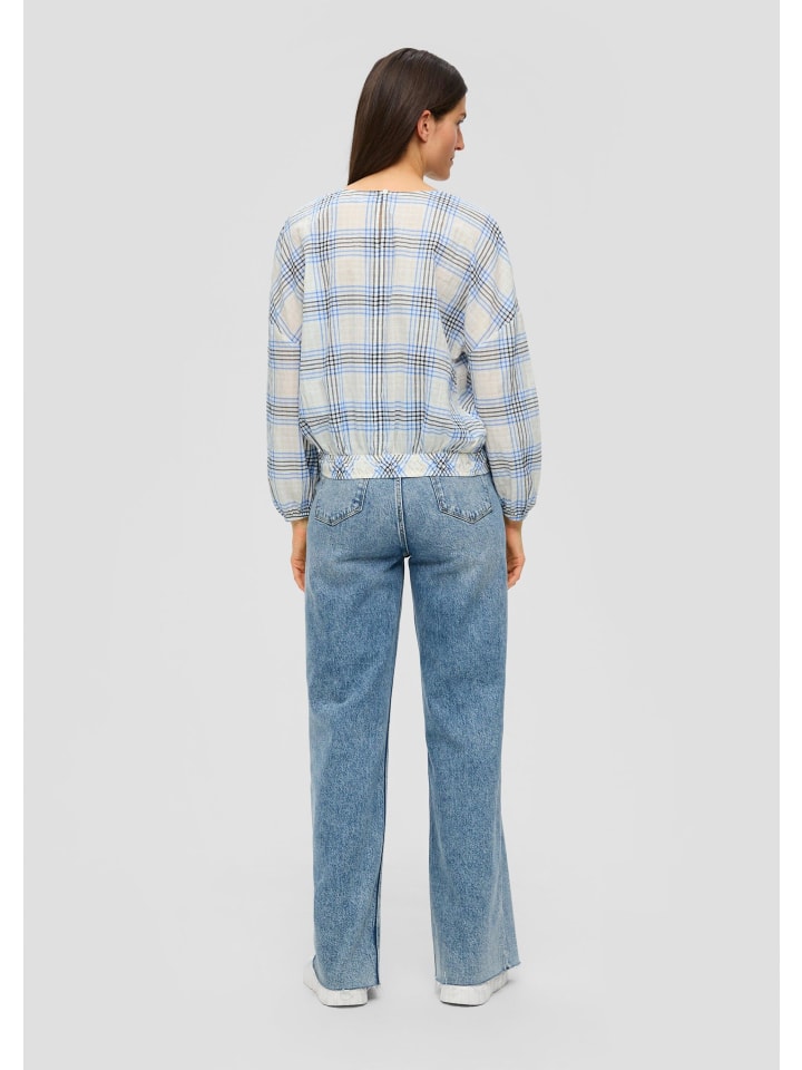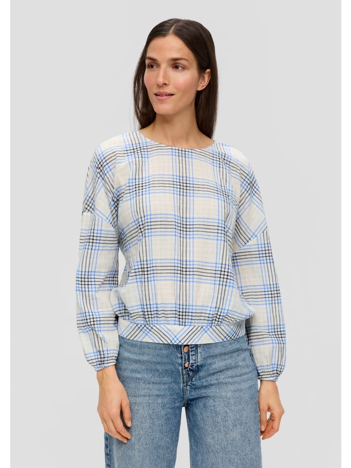 Эта воздушная и легкая блузка О-образного силуэта очаровывает клетчатым принтом по всей поверхности. Мягкая хлопковая ткань-стрейч, изысканные сборки и женственный вырез на спине делают ее идеальным повседневным спутником.