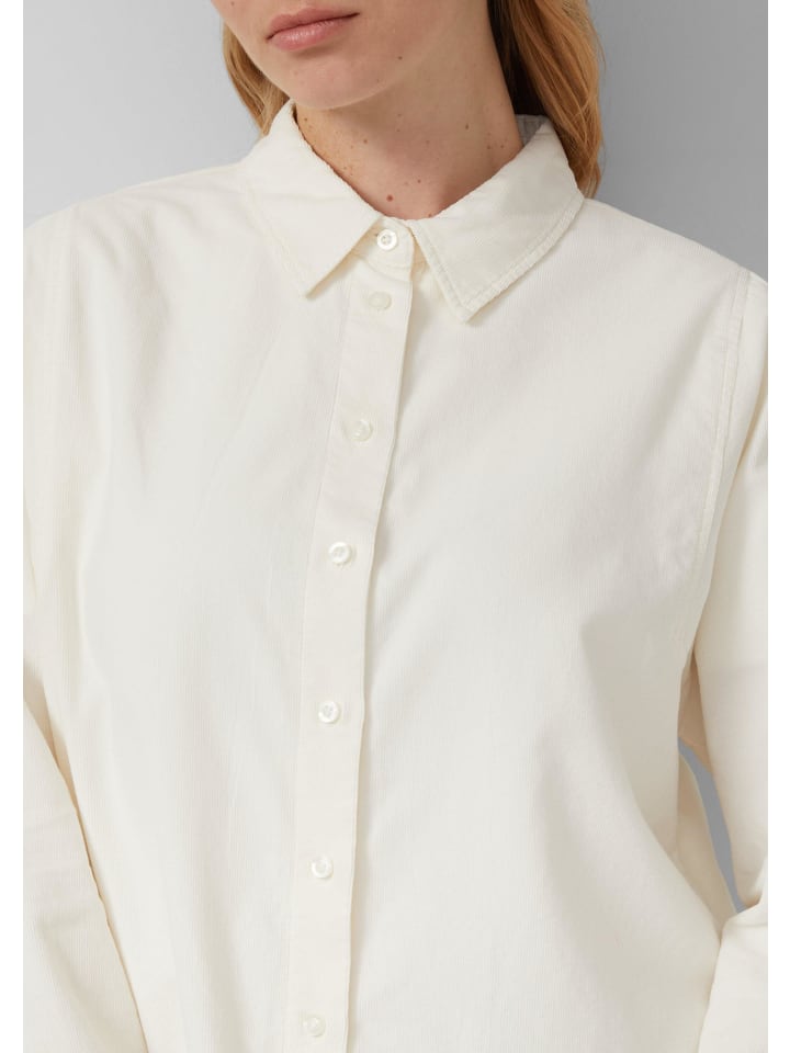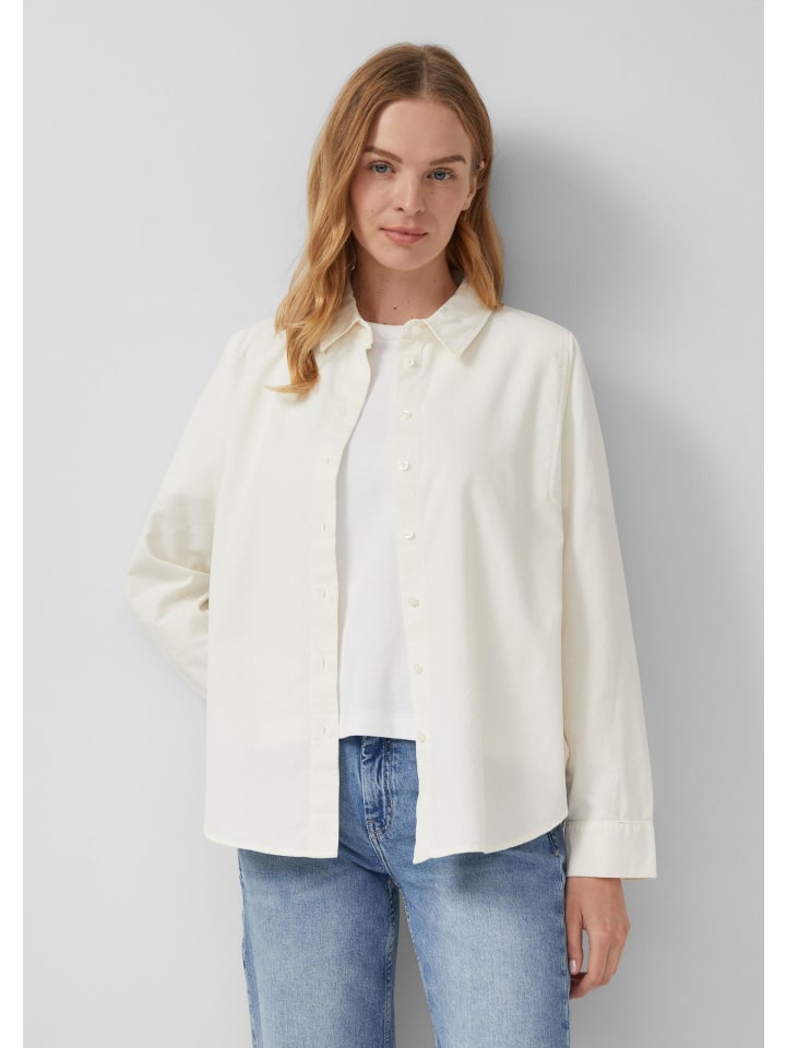 Эта уютная блузка из тонкого вельвета свободного кроя создаст непринужденный образ. Благодаря классическому рубашечному воротнику, практичной планке на пуговицах и закругленному подолу она станет вашим новым фаворитом для расслабленных дней.