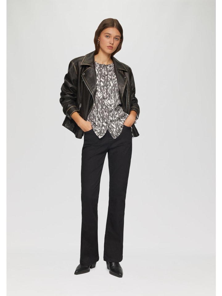 - Сплошной принт, меланжевая текстура, присборенные детали
