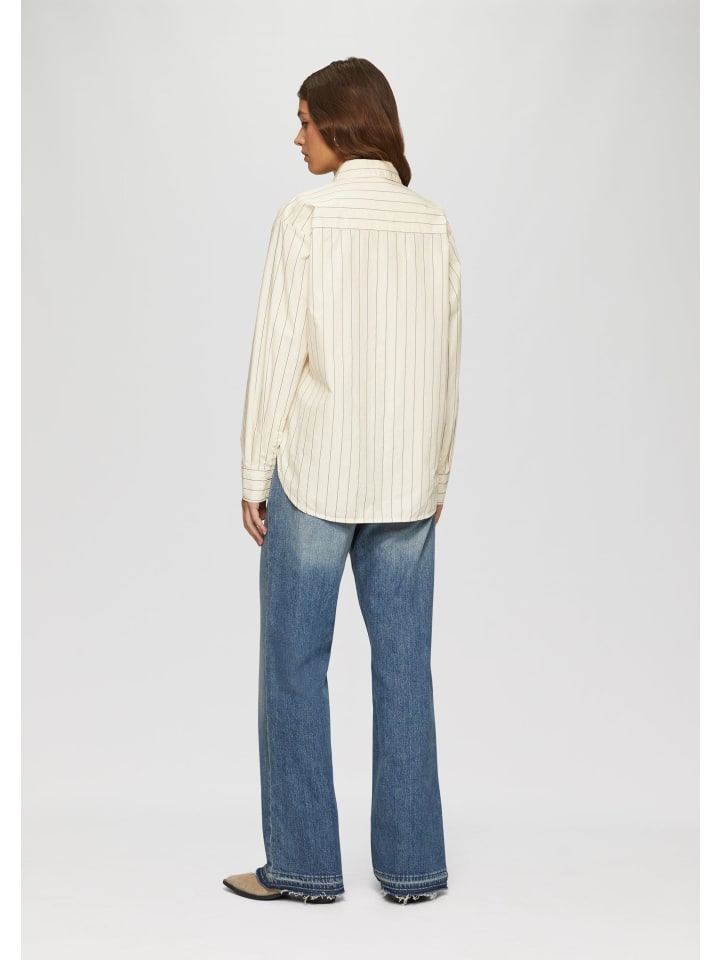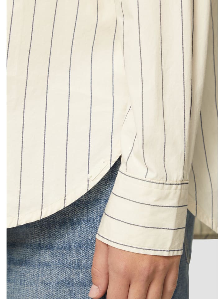 Ваш стильный образ: свободная блузка-рубашка с модным рисунком в тонкую полоску. Свободный крой для непринужденного повседневного образа. Изготовлена из легкого хлопкового поплина с практичной планкой на пуговицах. Идеально подходит для повседневного образа - будь то в городе или на отдыхе.