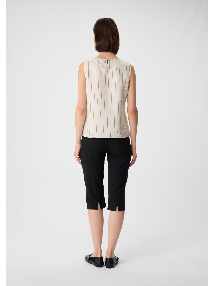 Воздушный и легкий шик: этот топ без рукавов из льняной ткани впечатляет рисунком в тонкую полоску и круглым вырезом. Короткая длина и застежка на петлю и пуговицу придают изделию современный вид. Сочетайте его с брюками с высокой талией для создания элегантного делового образа или носите с джинсами для непринужденного уик-энда.