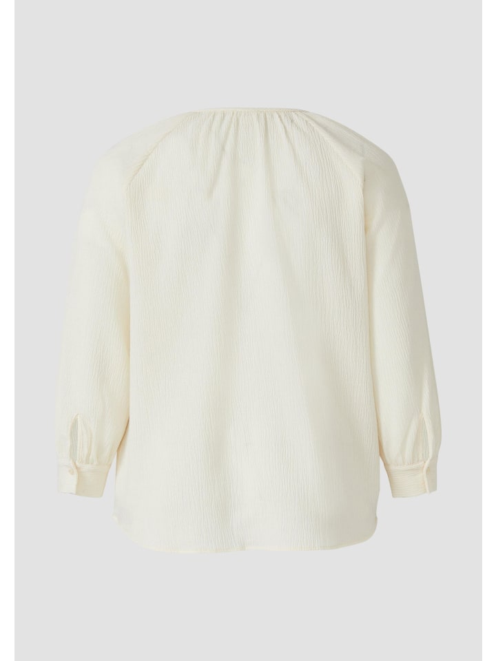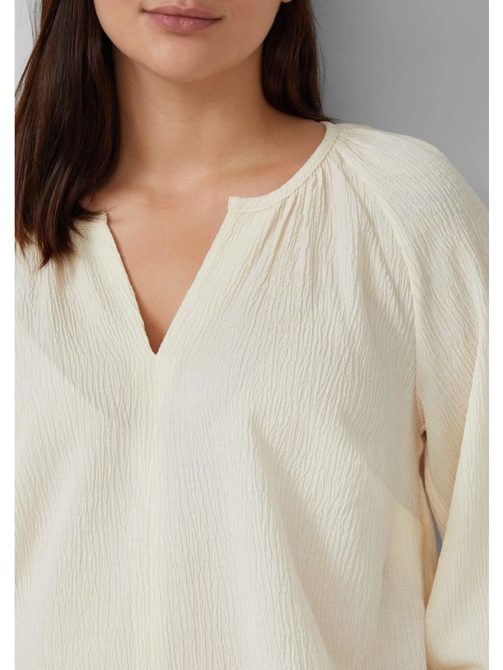 Эта блузка свободного кроя впечатляет своим структурированным кроем и продуманной отделкой рукавов. Эластичная ткань и сочетание круглого и V-образного выреза делают ее универсальным повседневным аксессуаром. Особенно привлекательны элегантные манжеты с пуговицами.