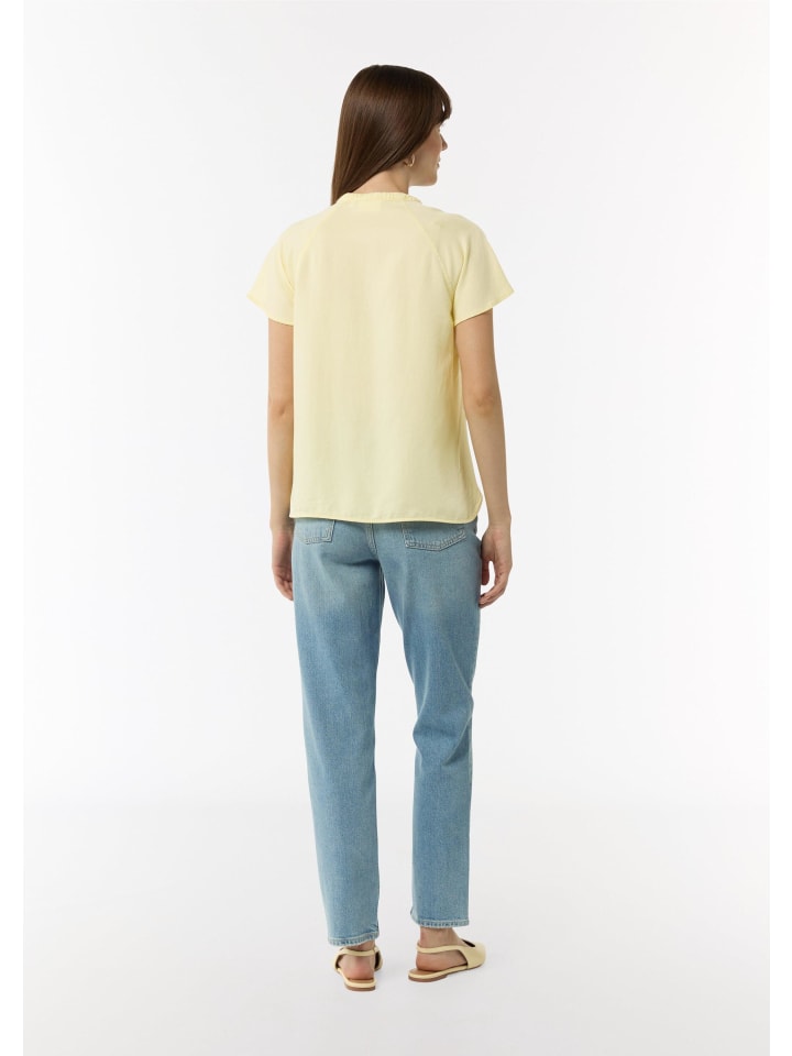 Мягкая шелковистая ткань лиоцелл подчеркивает фигуру. Эта блузка с рукавами реглан и завязкой на круглом вырезе создает женственный, свободный образ. Закругленный подол и тесьма с логотипом добавляют завершающие штрихи этой повседневной модели, создавая непринужденный летний образ.