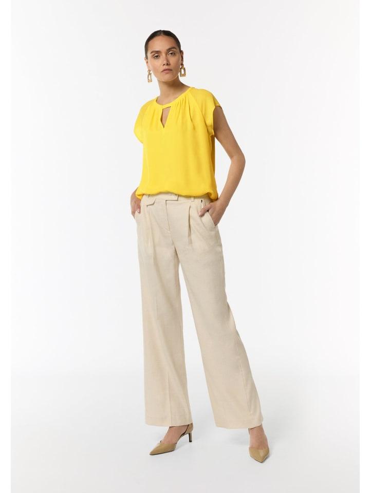 Непринужденная женственность с модным акцентом: шифоновая блузка с рукавами-крылышками. Изготовленная из струящейся ткани, она прекрасно подчеркивает фигуру. Круглый вырез и застежка на пуговицы придают изделию строгий вид, а короткие рукава добавляют легкости. Универсальный и незаменимый элемент для модного летнего образа.