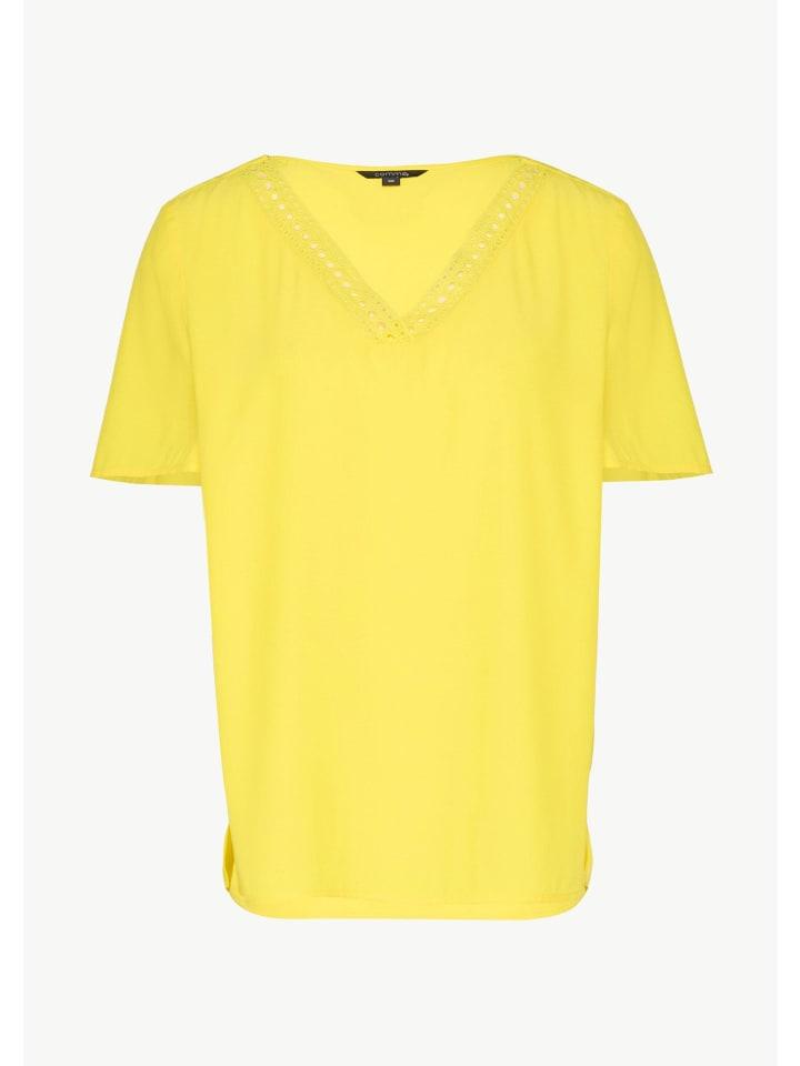 Легкая вискоза с кружевными вставками: эта свободная блузка из струящейся креповой ткани подчеркнет вашу фигуру непринужденной элегантностью. Женственный V-образный вырез и короткие рукава с кружевной отделкой придают изделию игривый вид. Носите ее с шортами или с брюками чинос, чтобы создать универсальный летний образ.