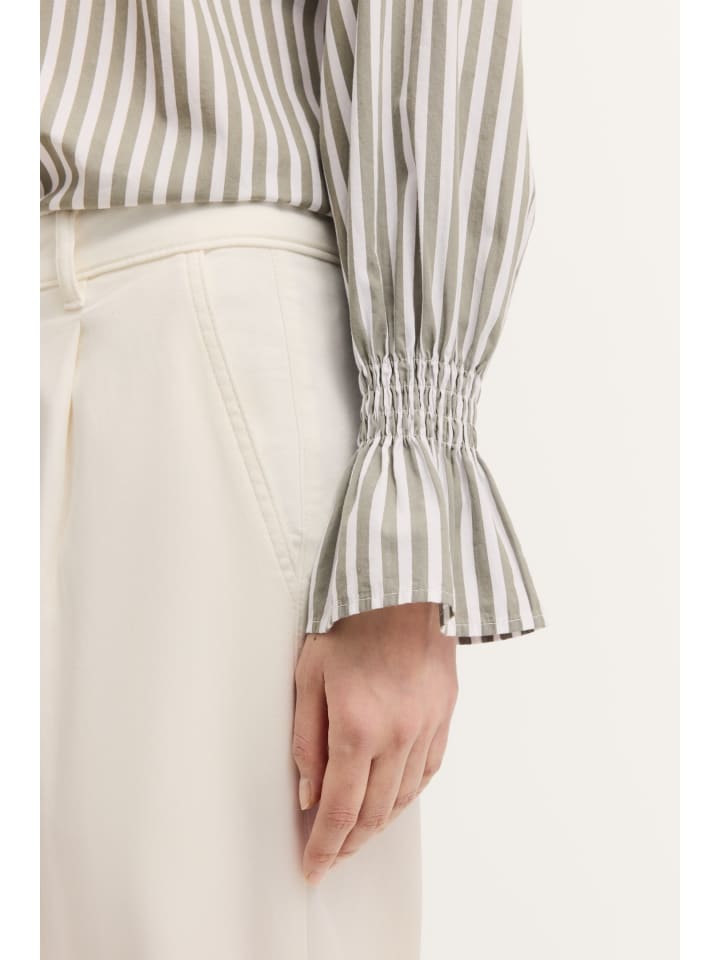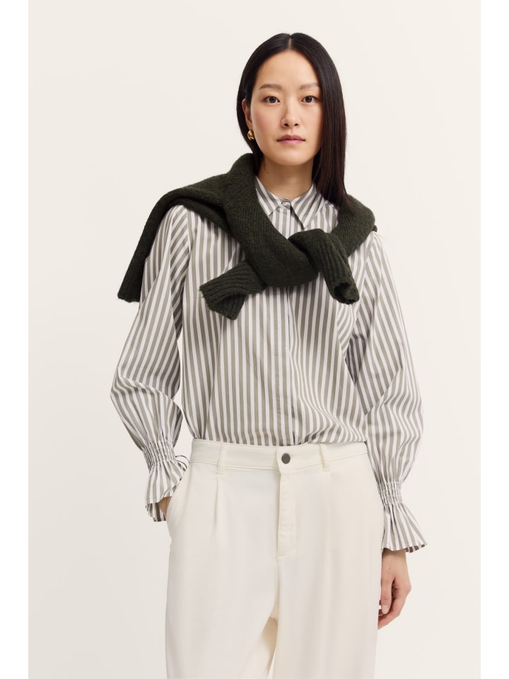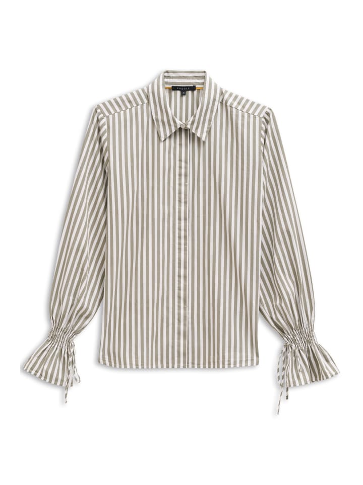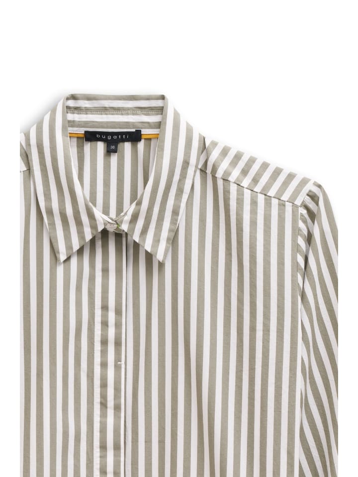 Эта повседневная блузка bugatti сочетает в себе женственные детали с классической непринужденностью и станет идеальной базовой вещью на каждый день. Классический крой обеспечивает комфорт, отличную посадку и свободу движений. Тонкий полосатый рисунок придает блузке вневременную элегантность, которую можно комбинировать с разными вариантами - с джинсами, брюками чинос или юбкой. Изюминкой являются присборенные детали на манжетах, которые добавляют легкую игривость дизайну и дополняют ваш индивидуальный образ. Классический рубашечный воротник структурирует наряд и обеспечивает элегантный вид, а планка с пуговицами обеспечивает гибкость стилизации - ее можно носить расстегнутой поверх топа или застегивать как самостоятельную вещь. Блузка изготовлена из чистого хлопка, приятна на ощупь, дышащая и простая в уходе. В офисе, на прогулке по городу или на отдыхе - с этой блузкой вы всегда будете стильно одеты. Если вы цените качество, комфорт и изысканные детали, эта повседневная блузка bugatti станет для вас идеальным выбором.