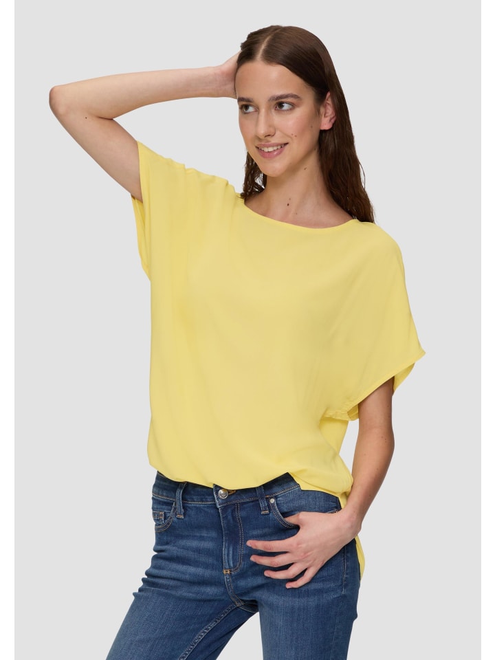 Свободная блузка свободного кроя из струящейся вискозы для непринужденного образа. Круглый вырез, вырезы и спущенные плечи обеспечат вам стильный повседневный образ. Закругленный подол с боковыми разрезами добавляет дополнительную прохладу.