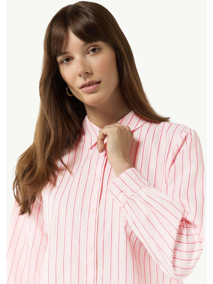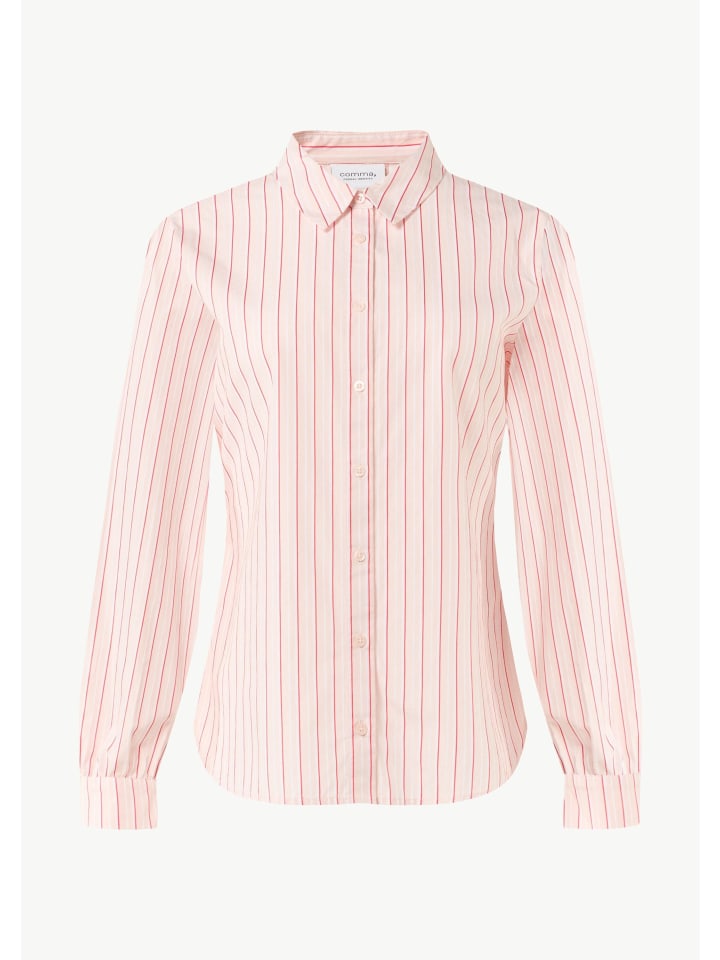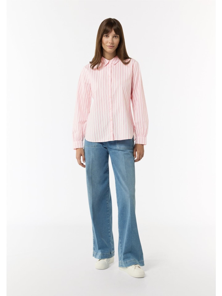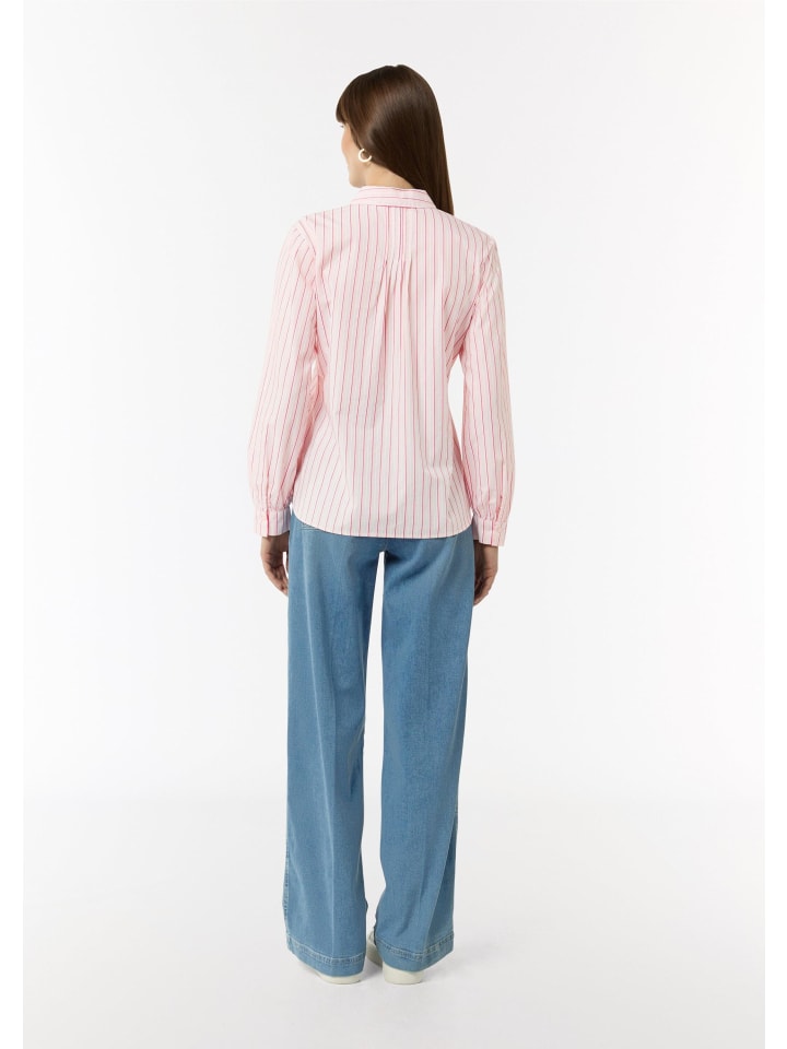 Полосатая хлопковая блузка со складками: эта высококачественная базовая модель обогатит ваш гардероб классической элегантностью. Классический крой и рубашечный воротник создают женственный силуэт, а закругленный подол и длинные рукава обеспечивают свободу движений. Планка на пуговицах и изысканная складка на спине добавляют стильные акценты. Эта универсальная и легко комбинируемая блузка средней длины станет вашим новым фаворитом в повседневном стиле.