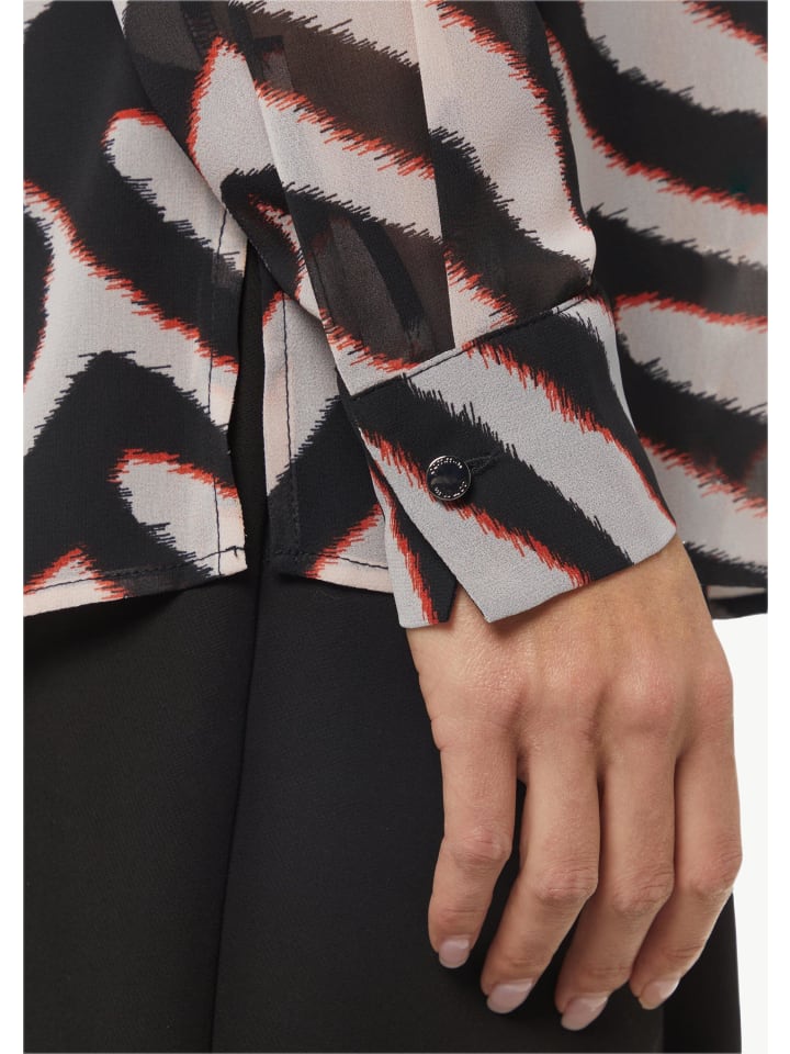 - Скрытая застежка на пуговицы, длинные рукава с манжетами