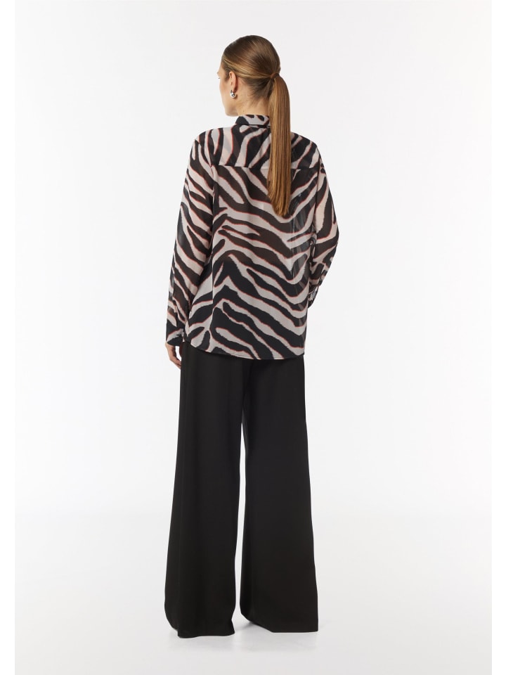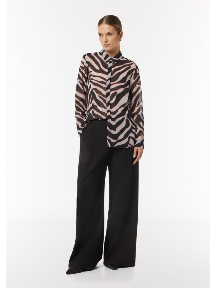Эта воздушная шифоновая блузка с классическим рубашечным воротником - ваш новый незаменимый предмет гардероба для создания универсального стиля. Прозрачная ткань добавит элегантности вашему образу, а силуэт с длинными рукавами подчеркнет изысканность. Сочетайте блузку с узкими джинсами для создания повседневно-шикарного образа или с юбкой-карандаш для создания делового образа. Идеально подходит для стильных многослойных образов.