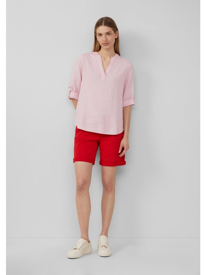 Воздушная и легкая льняная блузка для непринужденного, повседневного образа. Женственный крой с круглым вырезом и рукавами 3/4 с практичными отворотами впечатляет изысканными сборками. Неизменный спутник для ваших летних дней.