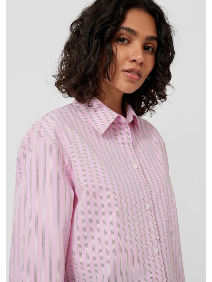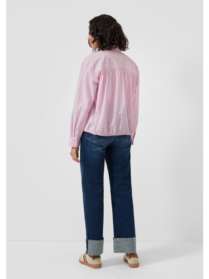 Эта повседневная хлопковая блузка свободного кроя создаст непринужденный образ. Женственный полосатый рисунок идеально гармонирует с изысканной спинкой и эластичным подолом. Классическая планка на пуговицах и рубашечный воротник делают ее универсальным дополнением к вашим повседневным нарядам.