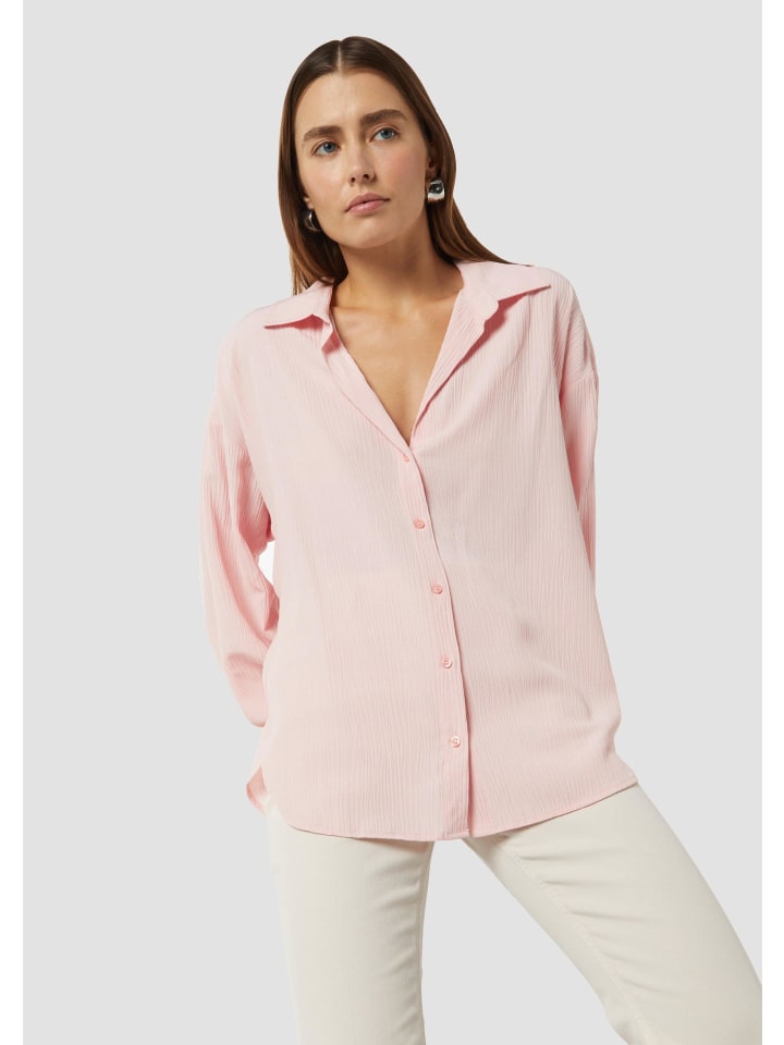 Эта структурированная блузка с рубашечным воротником - универсальная вещь, которая обязательно должна быть в вашем гардеробе. Свободный крой подчеркивает фигуру и обеспечивает максимальный комфорт. Длинные рукава и классическая планка на пуговицах придают изделию вневременную элегантность. Эту блузку легко сочетать с любыми образами: от офисных до повседневных - это универсальный стиль на все случаи жизни.