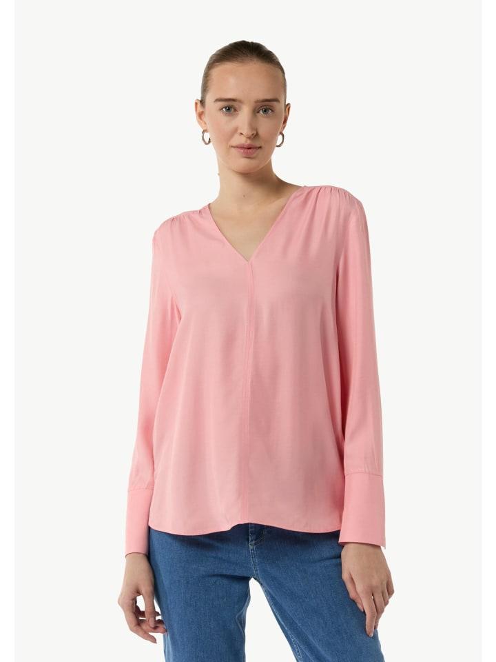 Очаруйте себя этой струящейся вискозной блузкой, которая всегда в моде. Женственный V-образный вырез и свободные длинные рукава с разрезом по низу придадут вам непринужденную элегантность. Эта модель впечатляет своим классическим свободным кроем и подчеркивающим фигуру силуэтом, как для деловых встреч, так и для отдыха.