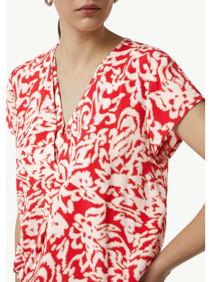 Легкая и женственная летняя блузка. Эта вискозная блузка с V-образным вырезом и модным узором прекрасно подчеркнет вашу фигуру. Короткие рукава и разрез сбоку добавят непринужденности. Носите ее с джинсами в непринужденном стиле или с брюками для более элегантных случаев. Эта воздушная модель станет вашим новым фаворитом в теплые дни.