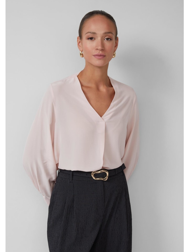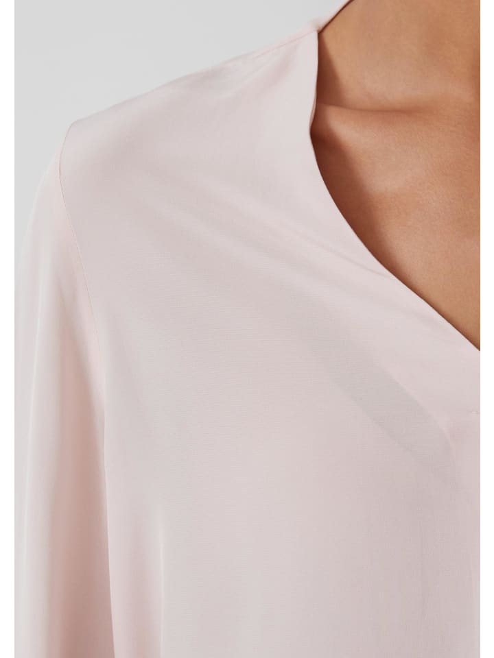 Полупрозрачная элегантность сочетается с непринужденной изысканностью - эта блузка-туника из струящейся вискозы станет отличным выбором для любого случая. V-образный вырез излучает уверенность, а присборенные края рукавов с манжетами добавляют модные акценты. Благодаря классическому крою вы легко сможете отправиться в офис или на ужин. Универсальная классика, которая подчеркнет ваш индивидуальный стиль, оставаясь при этом вне времени.