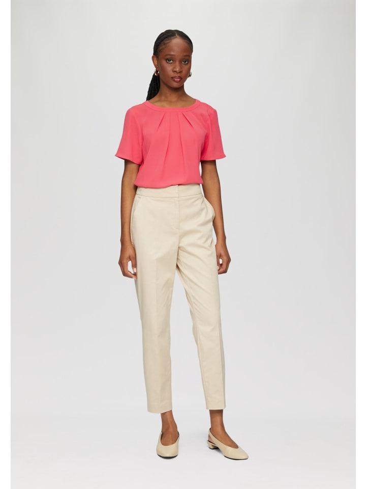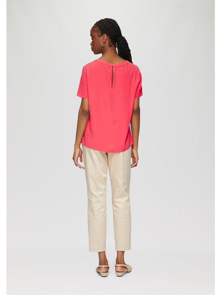 Креповая блузка с изысканной складкой на горловине - ваш новый фаворит для повседневных образов! Эта тканая блузка с короткими рукавами идеально сочетает в себе комфорт и стиль. Будь то в офисе или на прогулке по городу, эта универсальная блузка - всегда отличный выбор. Сочетайте ее с джинсами для создания непринужденного повседневного образа или с юбкой для более элегантного образа. Незаменимая вещь в любом гардеробе!