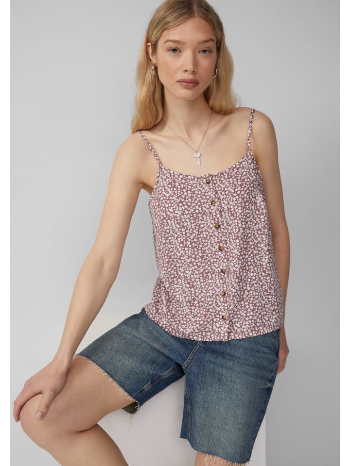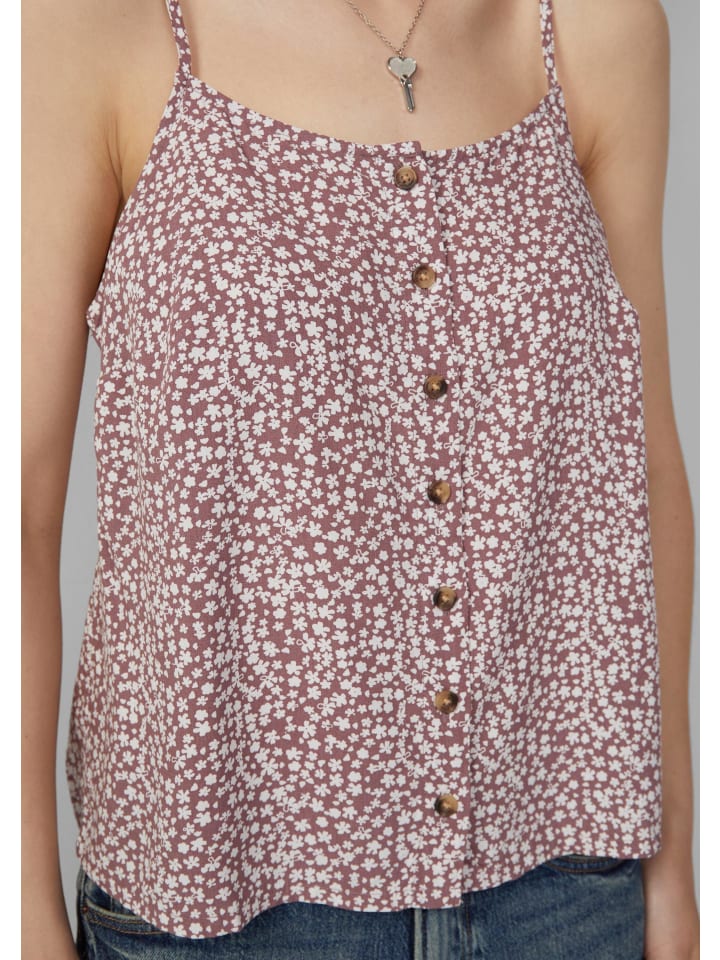 Ваш летний must-have: топ с модным принтом по всей поверхности. Идеально подходит для вечеринок и праздников. Изготовлен из воздушной вискозы, без рукавов и с регулируемыми бретелями. Классический крой для комфорта и расслабления. Планка с пуговицами - стильная деталь.
