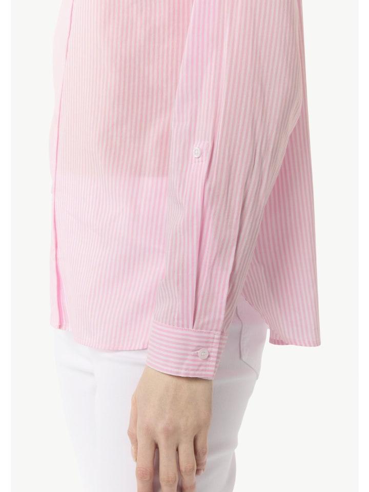 Вневременная элегантность в сочетании с летней легкостью: эта изящная блузка из смеси хлопка и вискозы - модный акцент. Классические отвороты рукавов и закругленный низ придают вашему образу женственный силуэт. Воздушный материал создает прохладу, а планка на пуговицах изящно подчеркивает круглый вырез. Эту блузку прямого кроя можно носить с джинсами или нарядно носить в офисе или на ужине.