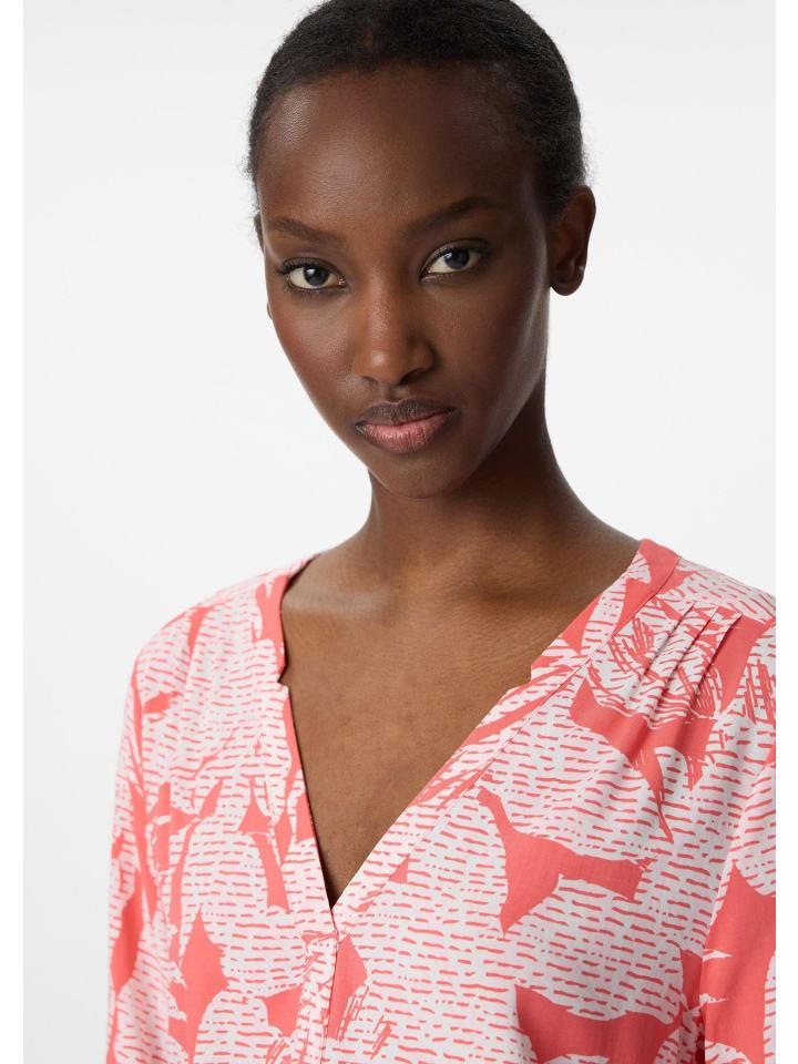 Откройте для себя универсальность нашей блузки с узором и рукавами 3/4. Туникообразный вырез и свободный крой подчеркнут вашу фигуру. Изысканные детали, такие как разрезы на рукавах, манжеты и элегантная складка, добавят модного штриха. Прямой подол с боковыми разрезами обеспечивает гибкие возможности для создания образа. Сочетайте блузку с узкими джинсами для создания непринужденного и элегантного образа или с юбкой для создания женственного образа.