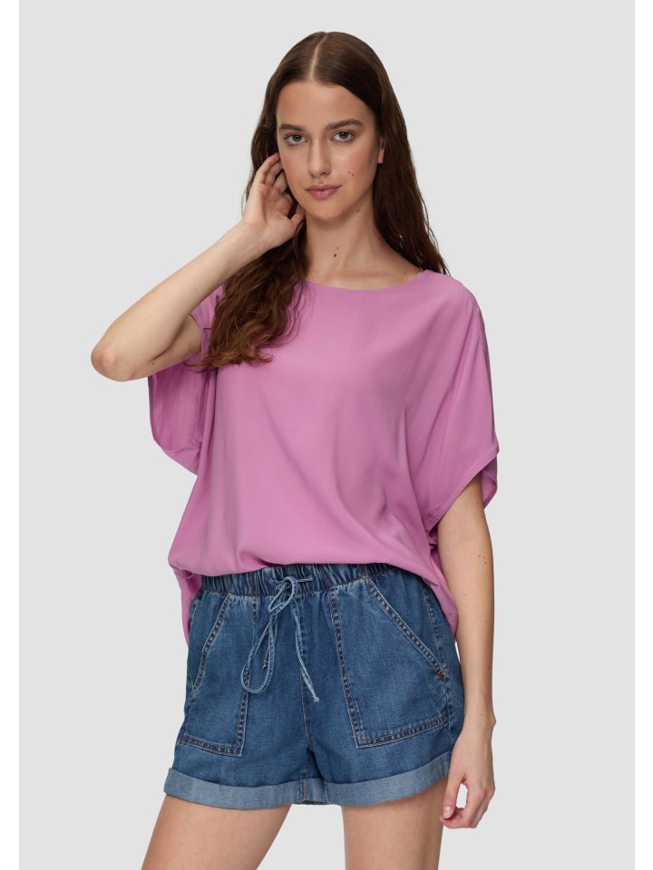 Свободная блузка свободного кроя из струящейся вискозы для непринужденного образа. Круглый вырез, вырезы и спущенные плечи обеспечат вам стильный повседневный образ. Закругленный подол с боковыми разрезами добавляет дополнительную прохладу.