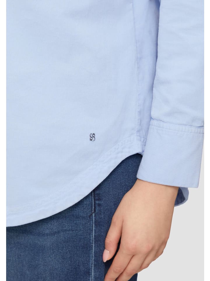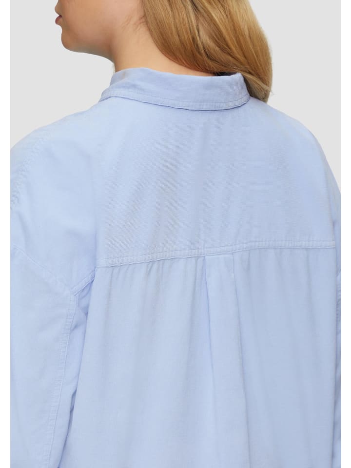 Эта повседневная блузка-рубашка из тонкого вельвета свободного кроя впечатляет удлиненным подолом сзади и классическим рубашечным воротником. Спущенные плечи и манжеты придают однотонному крою непринужденный вид.