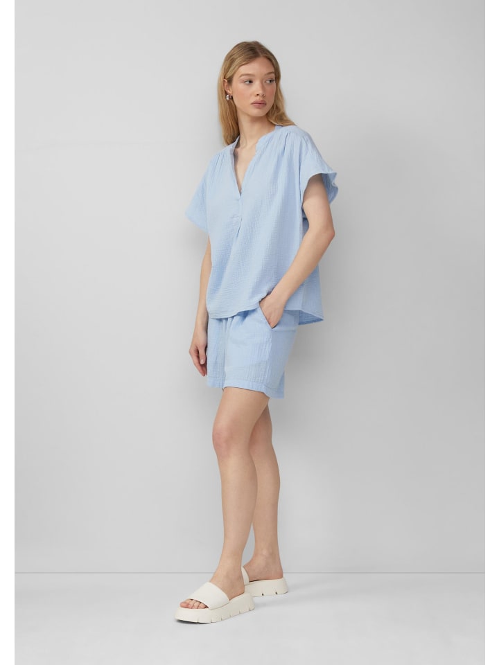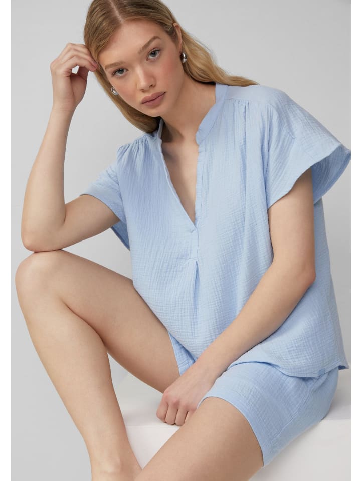 Воздушная и легкая муслиновая блузка для теплых дней. Благодаря сборкам и сплошному принту она имеет очаровательно свободный крой. Идеально подходит для пикников или походов на пляж - это воплощение летней легкости. Как насчет мороженого?