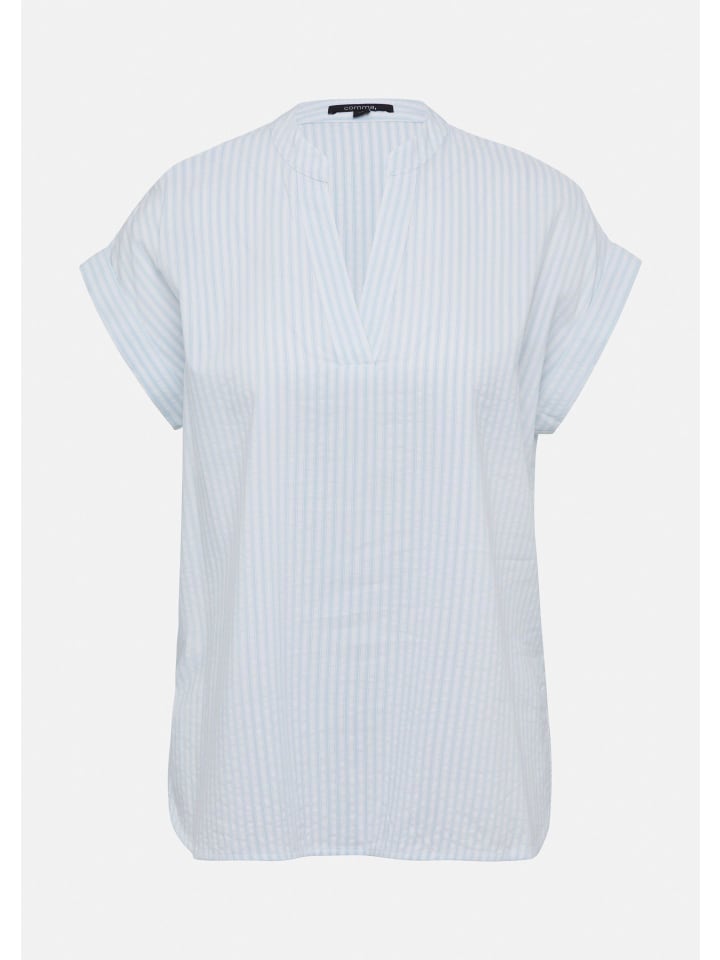 Откройте для себя полосатую блузку-тунику - эффектный летний предмет гардероба. Воздушная вискозная ткань подчеркивает фигуру, а туникообразный вырез и спущенные плечи добавляют женственности. Закругленный подол с боковыми разрезами придает образу современную легкость. Сочетайте блузку с джинсами или элегантно с брюками строгого кроя - универсальность сочетаний гарантирована!