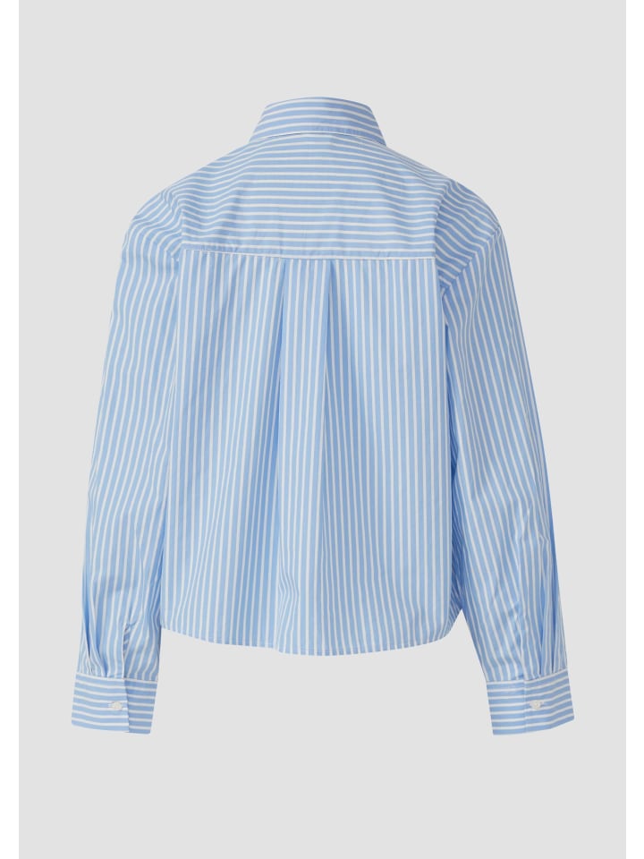 Эта повседневная поплиновая блузка свободного кроя впечатляет классическим полосатым узором и элегантным рубашечным воротником. Спущенное плечо и потайная планка на пуговицах создают непринужденный, классический образ на каждый день.