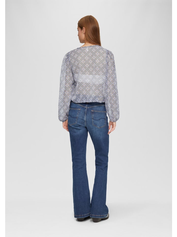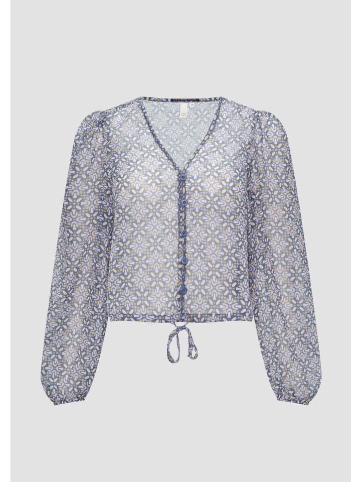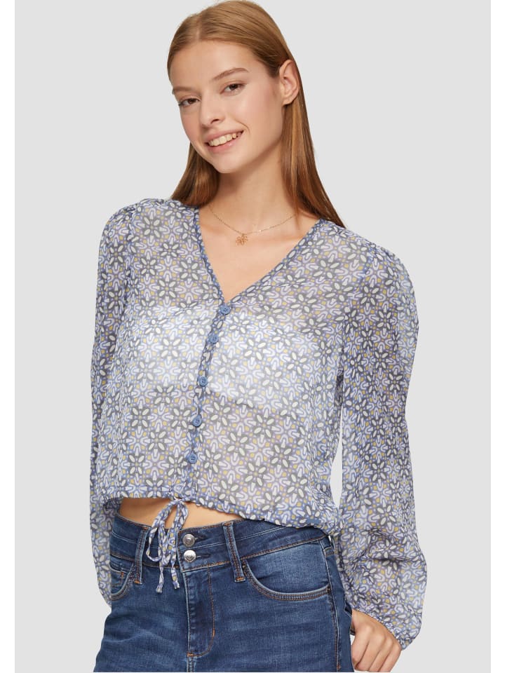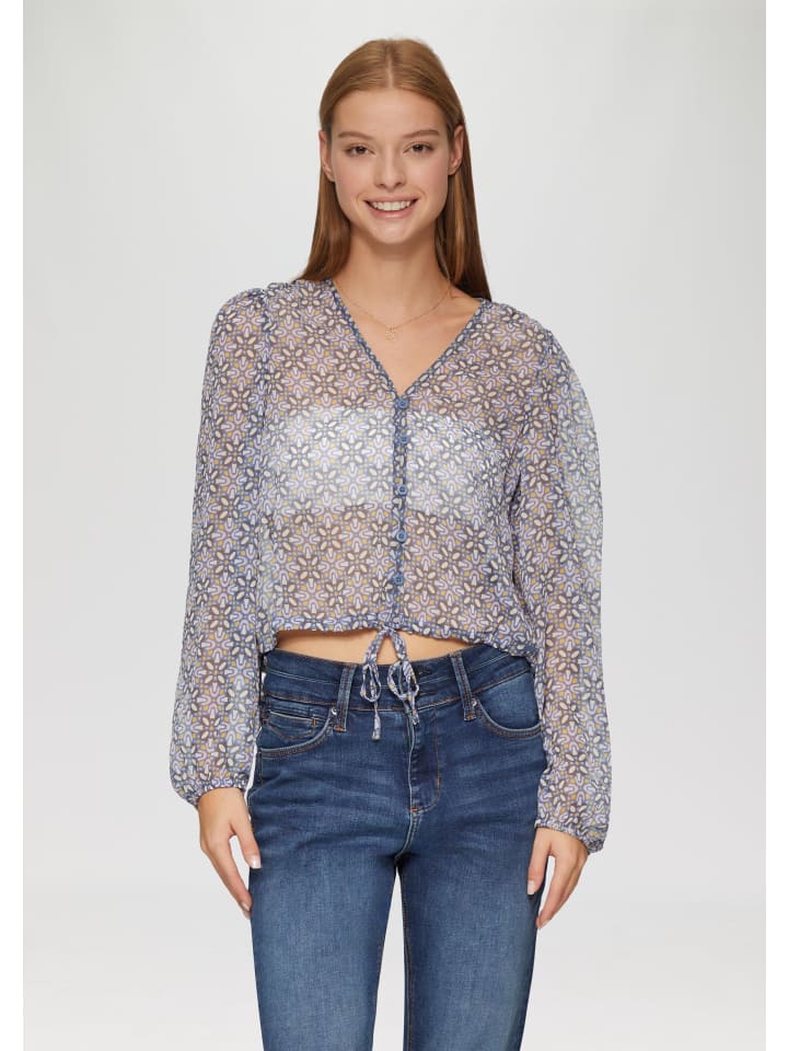 Откройте для себя новый любимый образ: эта укороченная шифоновая блузка с V-образным вырезом и рукавами-буфами - идеальное сочетание повседневности и женственности. Абстрактный принт по всей поверхности и струящаяся ткань делают ее стильным спутником на каждый день.