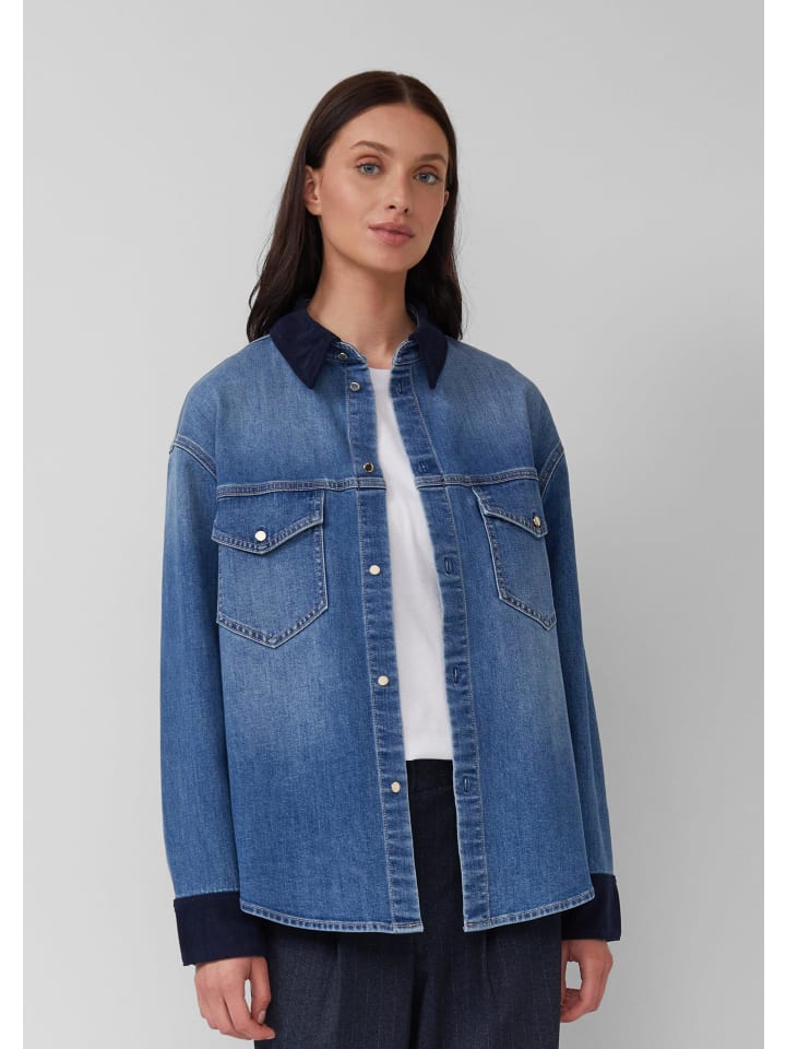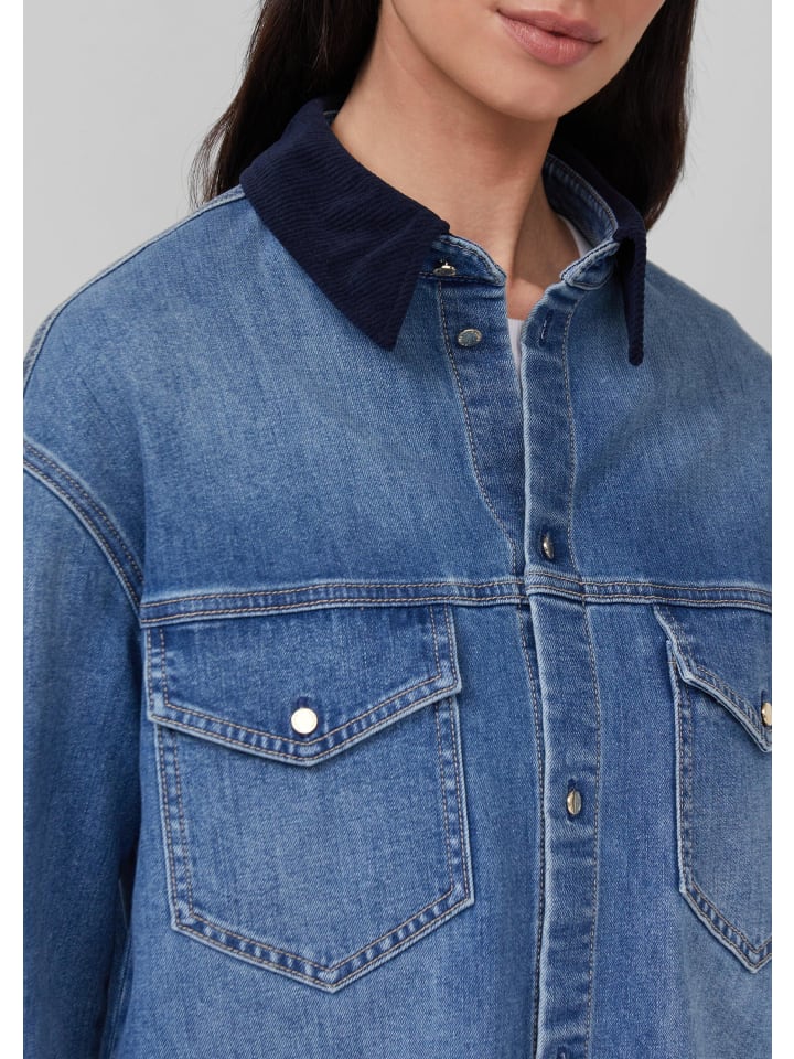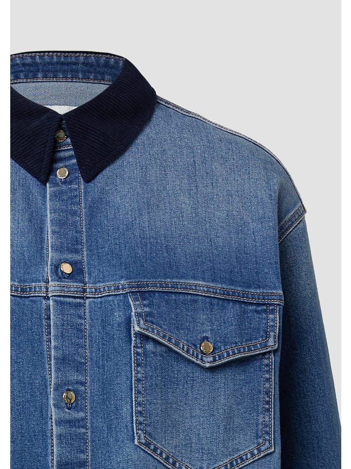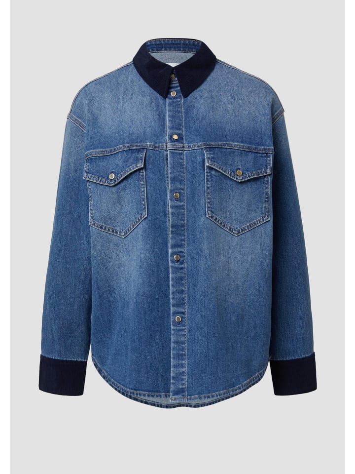 Элегантная джинсовая рубашка с мягкими вельветовыми деталями и практичными накладными карманами. Свободный крой и классический рубашечный воротник делают эту куртку универсальным аксессуаром как для повседневных, так и для торжественных случаев.