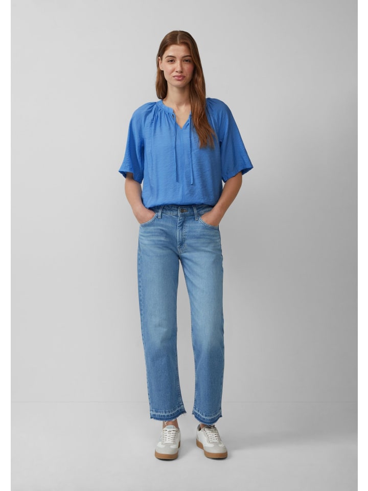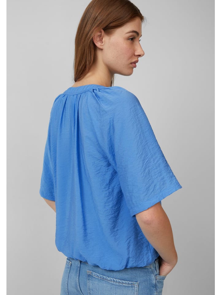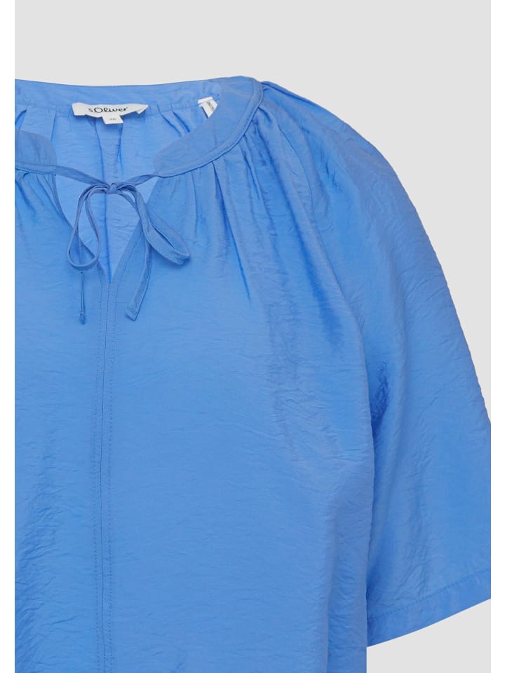 Эта женственная блузка с нежным принтом по всей поверхности и рукавами реглан очаровывает своей воздушной, легкой текстурой. Элегантный воротник-стойка с бантом и эластичный подол создают непринужденный, но стильный образ на каждый день.