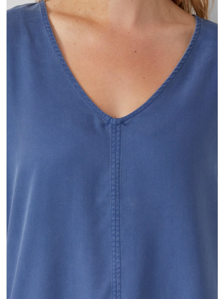 Эта женственная блузка из лиоцелла свободного кроя впечатляет струящейся драпировкой и V-образным вырезом. Практичный низ на шнурке и отсутствие рукавов со спущенным плечом делают ее идеальным спутником для расслабленных летних дней.