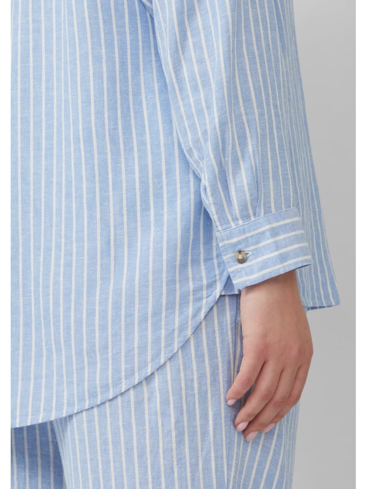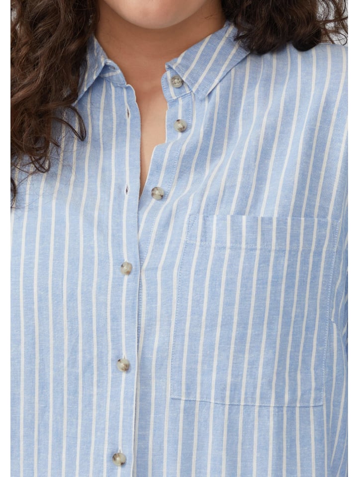 Эта воздушная и легкая льняная блузка с классическими полосками поможет вам выглядеть стильно весь день. Женственный прямой крой со спущенной линией плеча и закругленным подолом выгодно подчеркнет вашу фигуру. Идеально подходит для непринужденных повседневных образов.