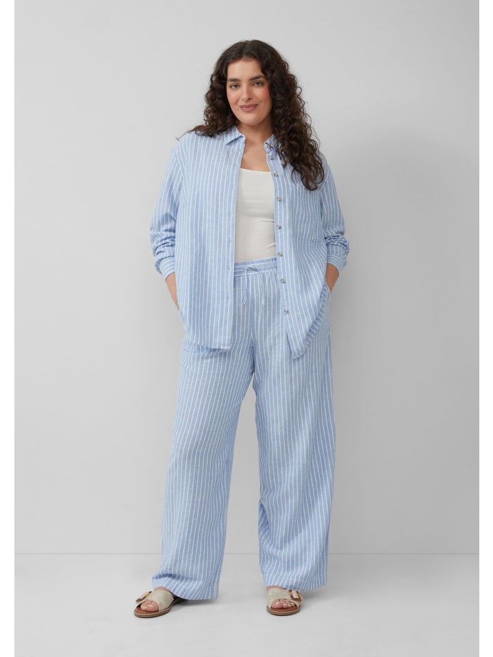 - В полоску, из льняной смеси, со складкой сзади
