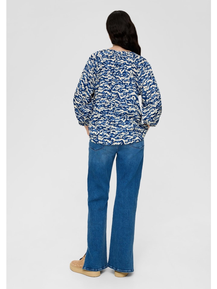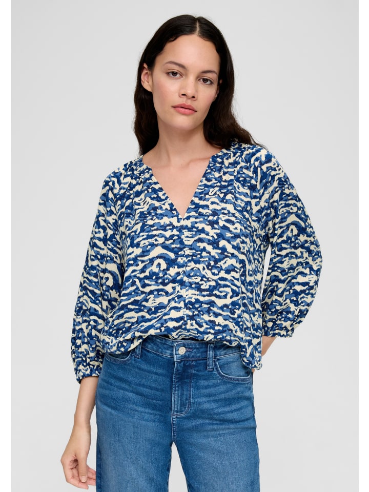 Эта воздушная и легкая вискозная блузка с эффектным принтом по всей поверхности создает непринужденный образ. Рукава реглан 3/4 с эластичными манжетами и свободный крой обеспечивают максимальный комфорт на каждый день.