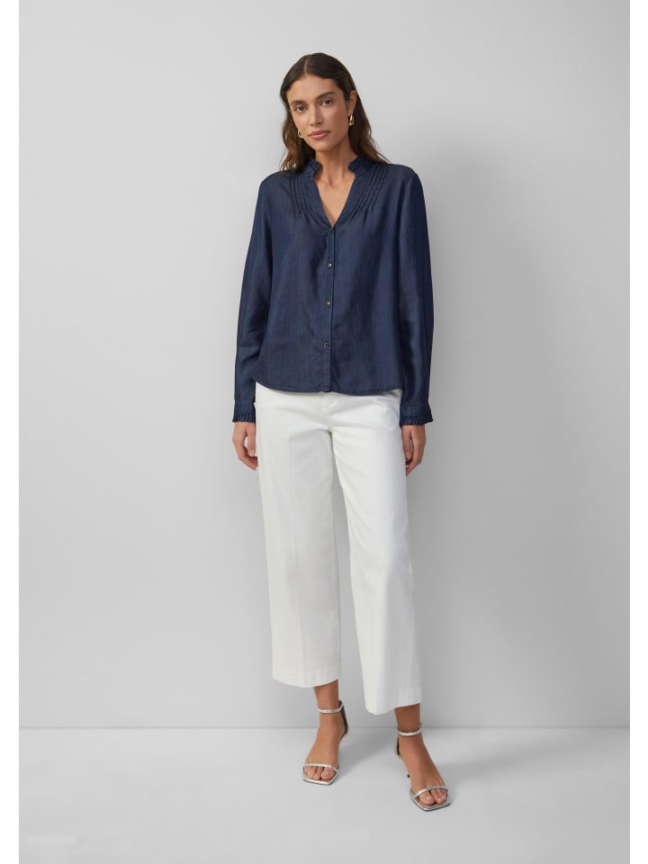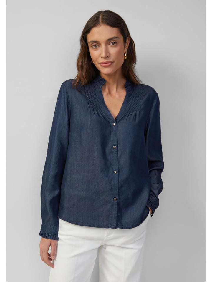 Уверенность и стиль: эта блузка из лиоцелла сочетает в себе непринужденную элегантность и женственные детали. Воротник с оборкой и изящные складки добавляют изысканные акценты, а легкая стирка обеспечивает непринужденный образ. Будь то в офисе или на неформальном ужине - вы будете впечатлять своей вневременной элегантностью и современным стилем.