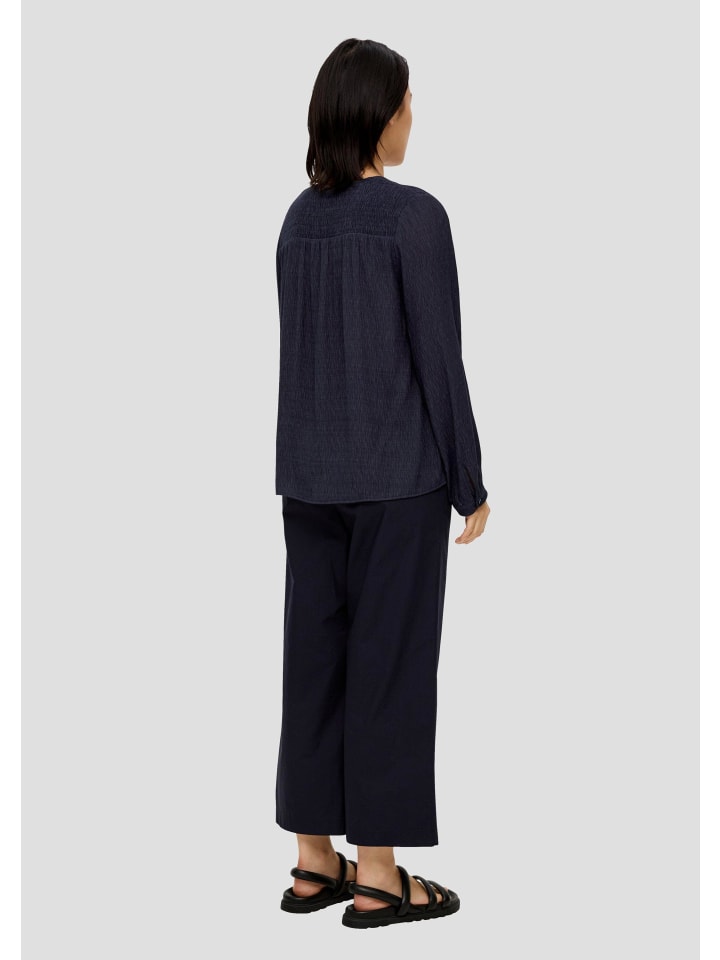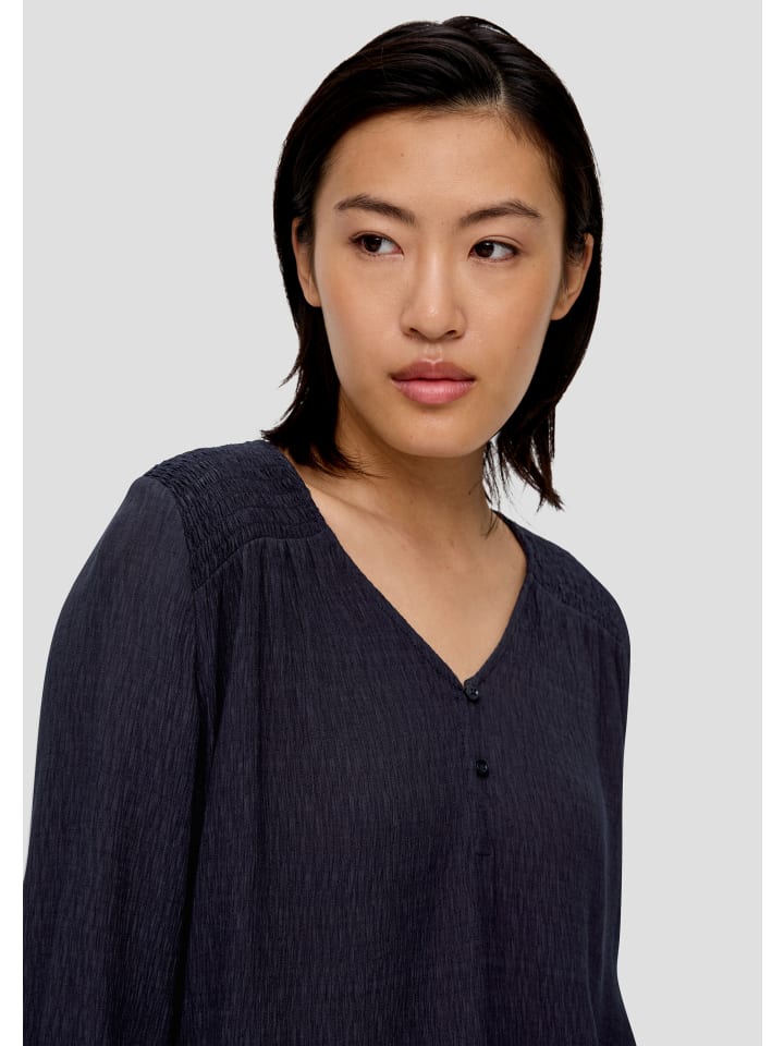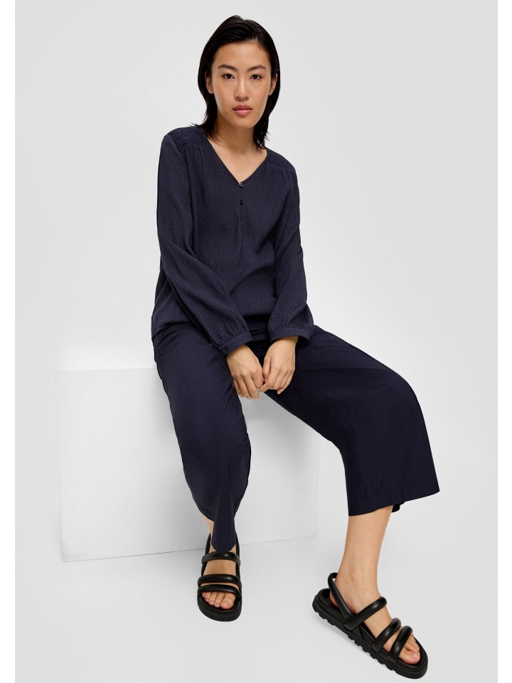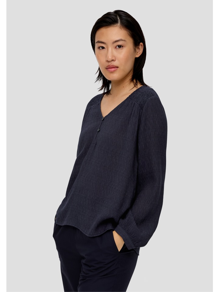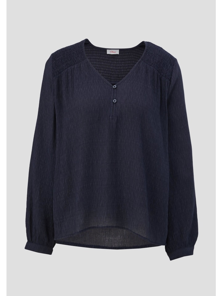 Эта красивая блузка со сборками - идеальный универсальный предмет гардероба для вашего повседневного образа. Струящаяся ткань обеспечивает комфорт и стиль. Благодаря женственному V-образному вырезу и длинным рукавам она легко дополнит любой наряд. Удлиненный подол сзади добавит современности. Сочетайте ее с джинсами для создания повседневного образа или нарядными брюками. Классический крой обеспечивает привлекательный силуэт. Подготовьтесь к предстоящему сезону с этой модной блузкой. Добавьте эту незаменимую вещь в свой гардероб прямо сейчас!