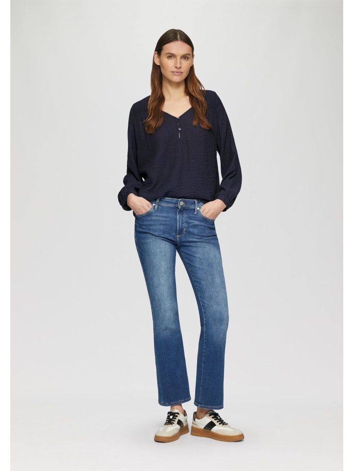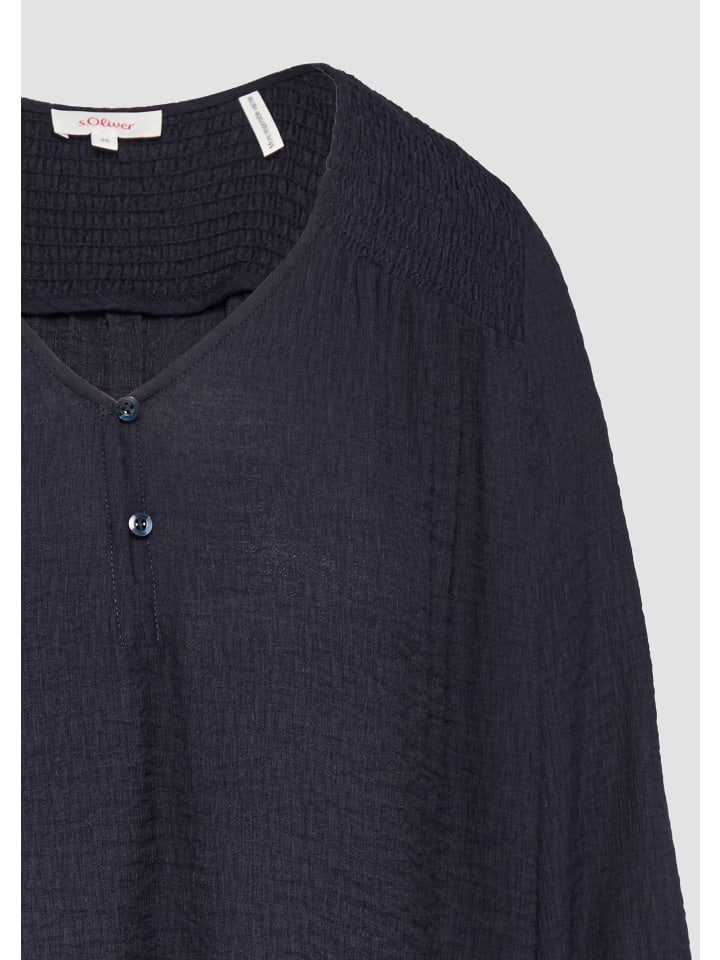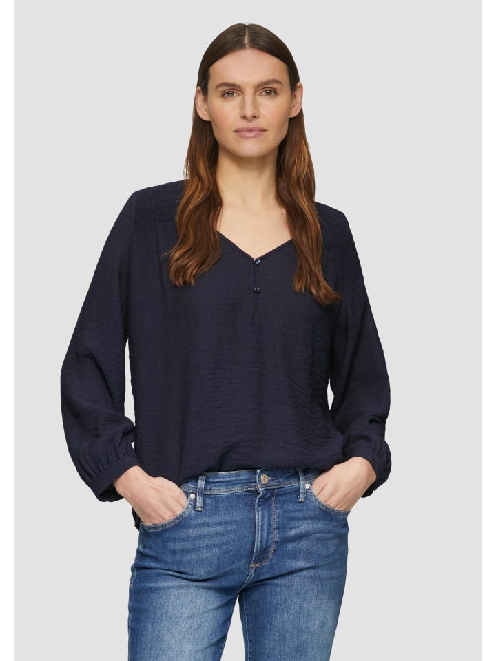 Эта воздушная и легкая вискозная блузка с присборенными деталями и широкими рукавами создает женственный образ. V-образный вырез и струящийся крой выгодно подчеркивают фигуру - идеально подходят для непринужденных повседневных образов.