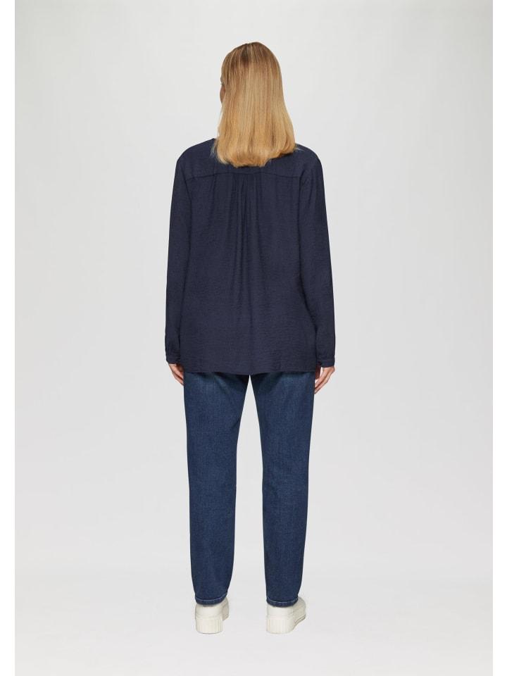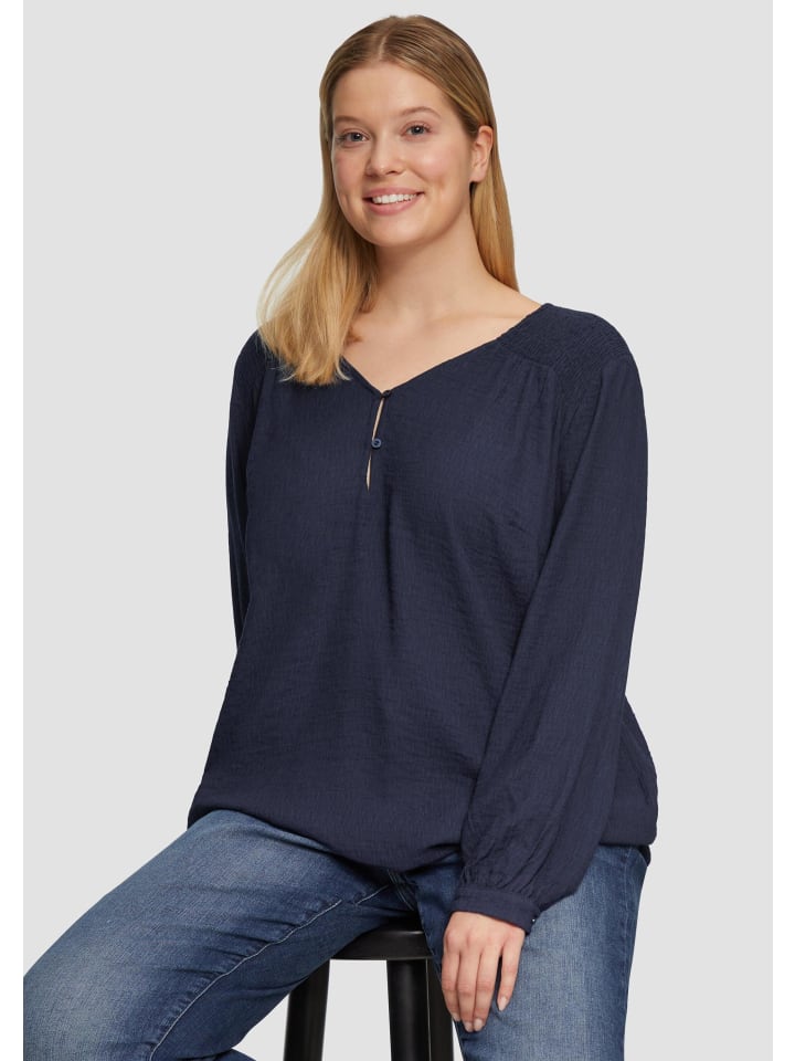 Эта женственная блузка из структурированной смесовой вискозы очаровывает изысканными сборками. V-образный вырез и свободный крой создают стильный образ. Манжеты и закругленный низ добавляют элегантные акценты.