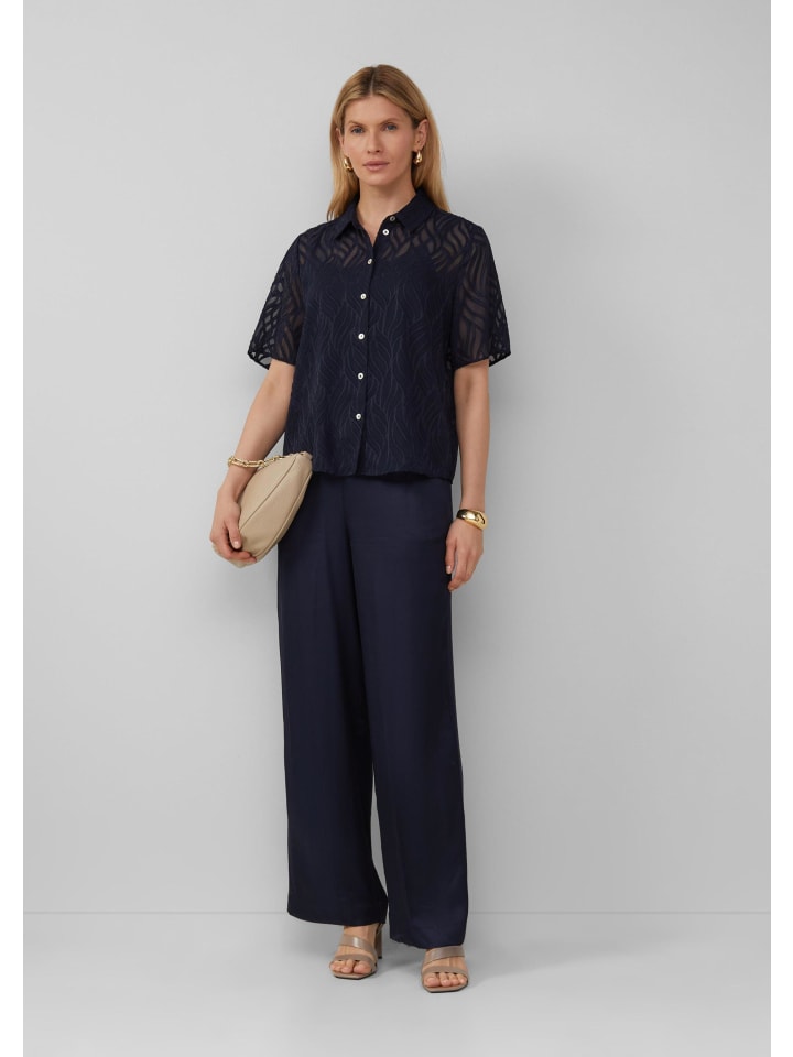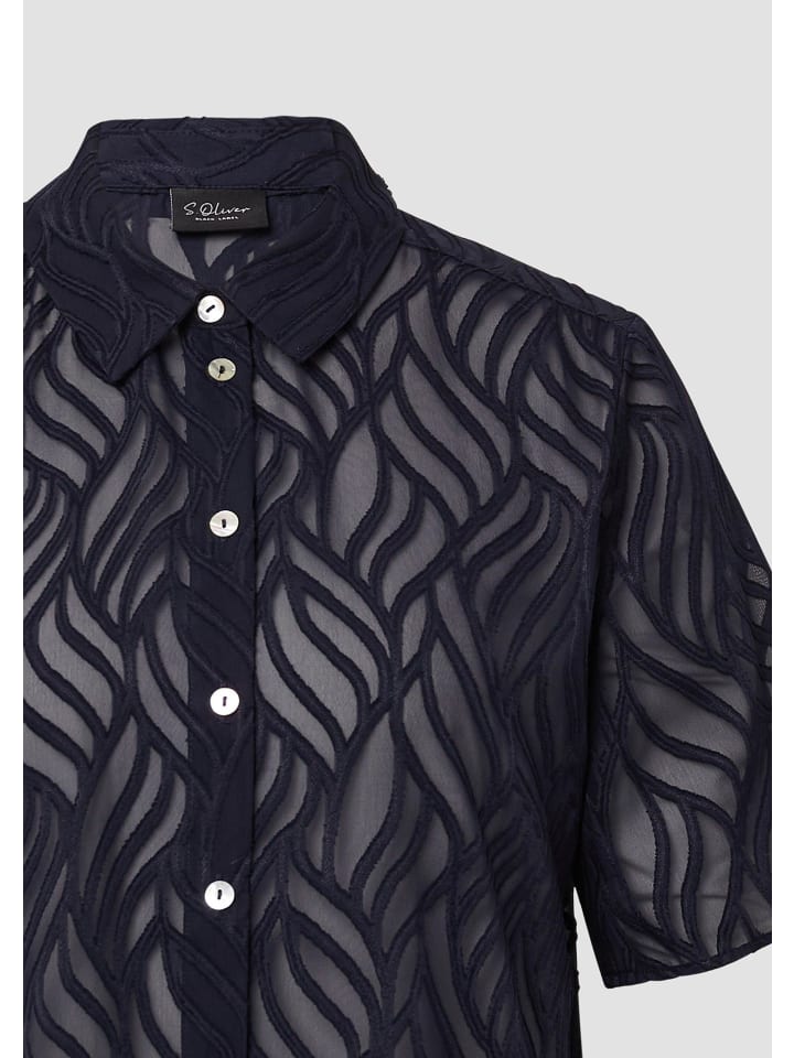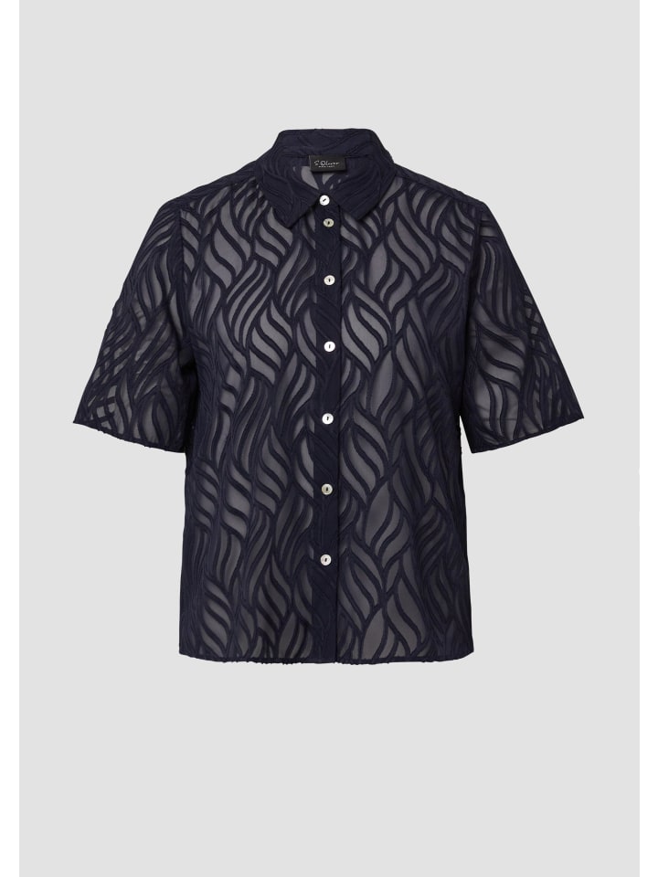 Откройте для себя чистую элегантность: эта полупрозрачная блузка с пленительным фактурным узором станет вашим незаменимым аксессуаром для любого случая. Укороченный стандартный крой подчеркнет вашу фигуру, а классический рубашечный воротник подчеркнет изысканность. Будь то деловая встреча или ужин, вы будете впечатлять своей вневременной изысканностью и уверенным стилем.